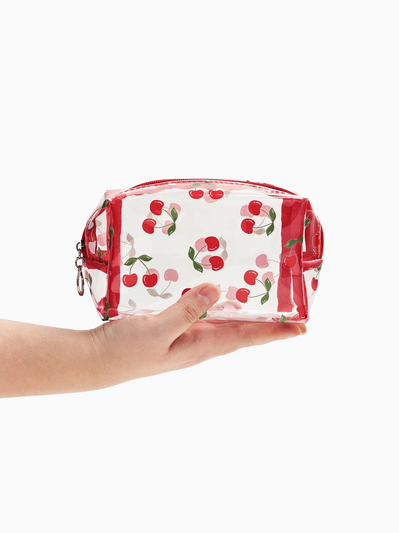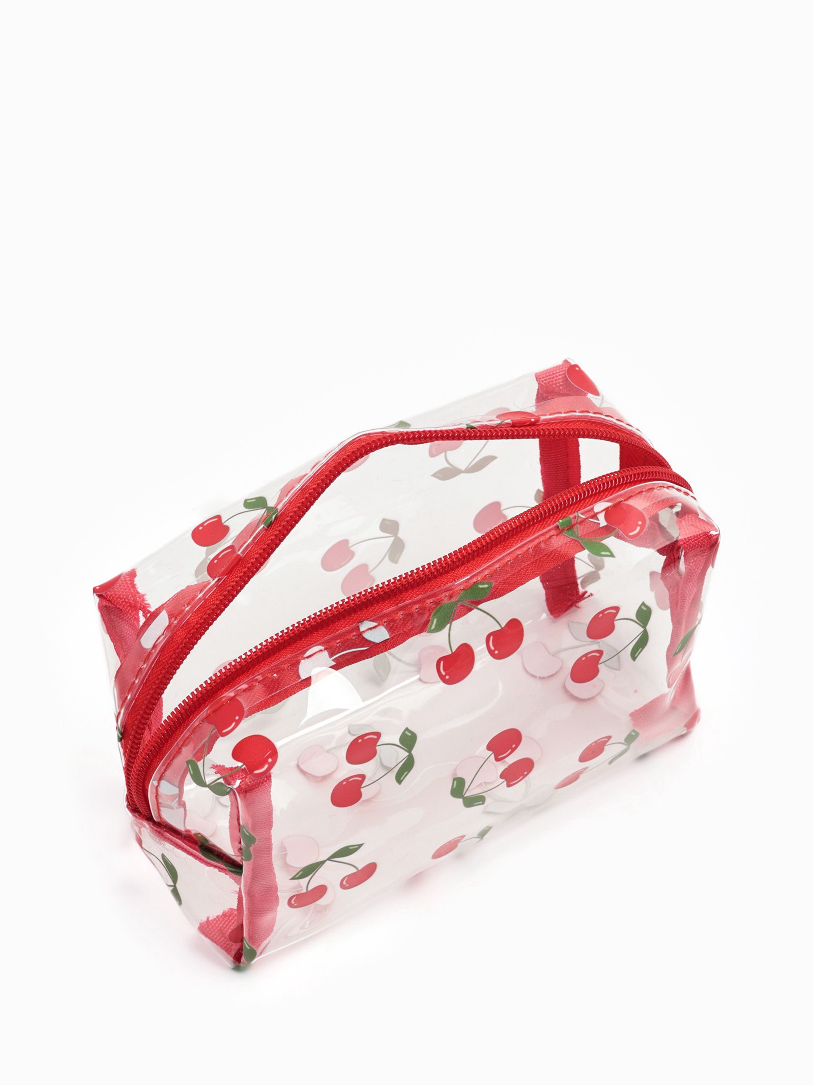 Косметичка женская "Вишенка", для бассейна, на молнии, прозрачная, 6x15x8.5 см., Китай