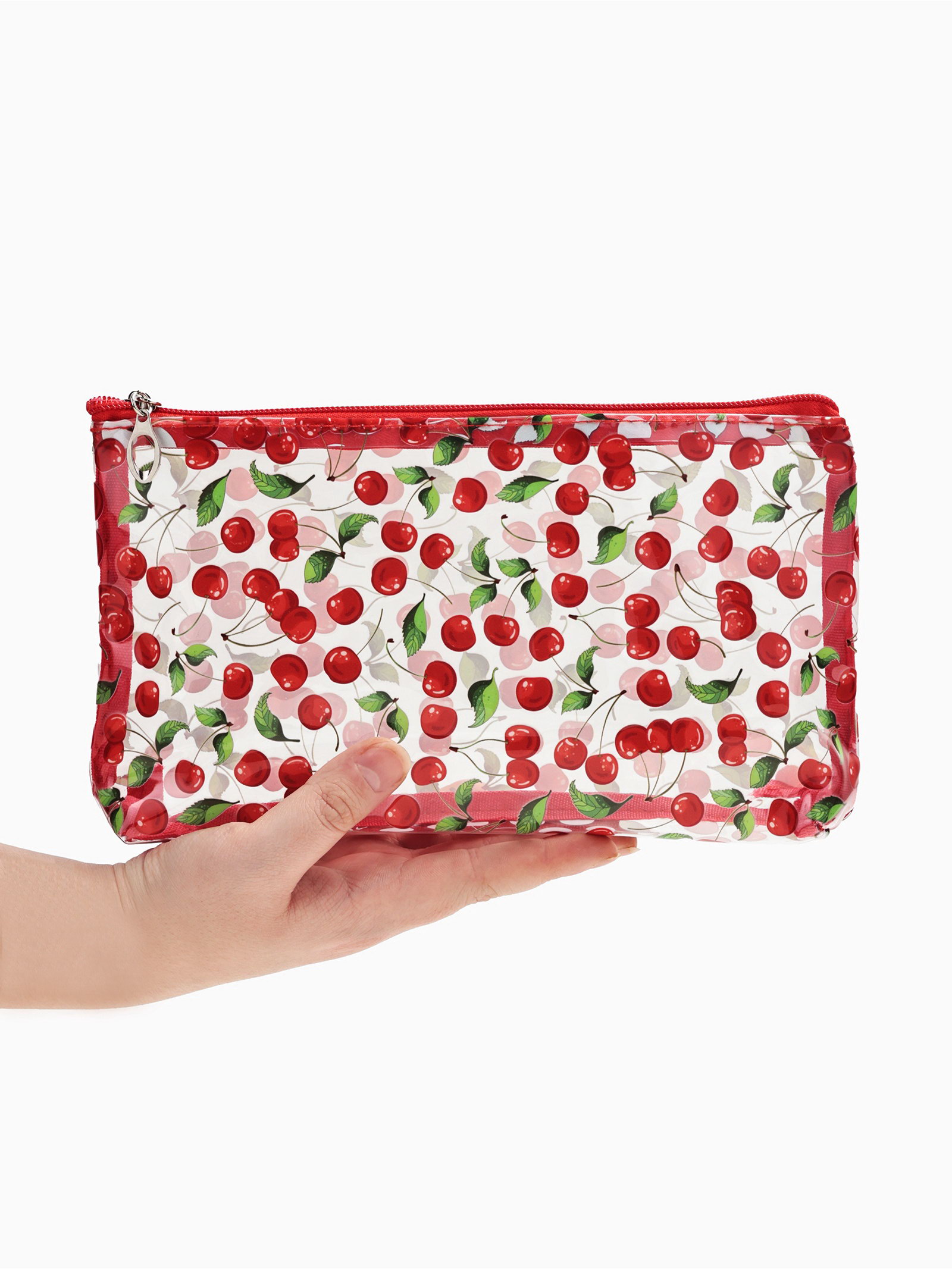 Косметичка женская Cherry lady, для бассейна, на молнии, прозрачная, красная, 5x25x15 см., Китай