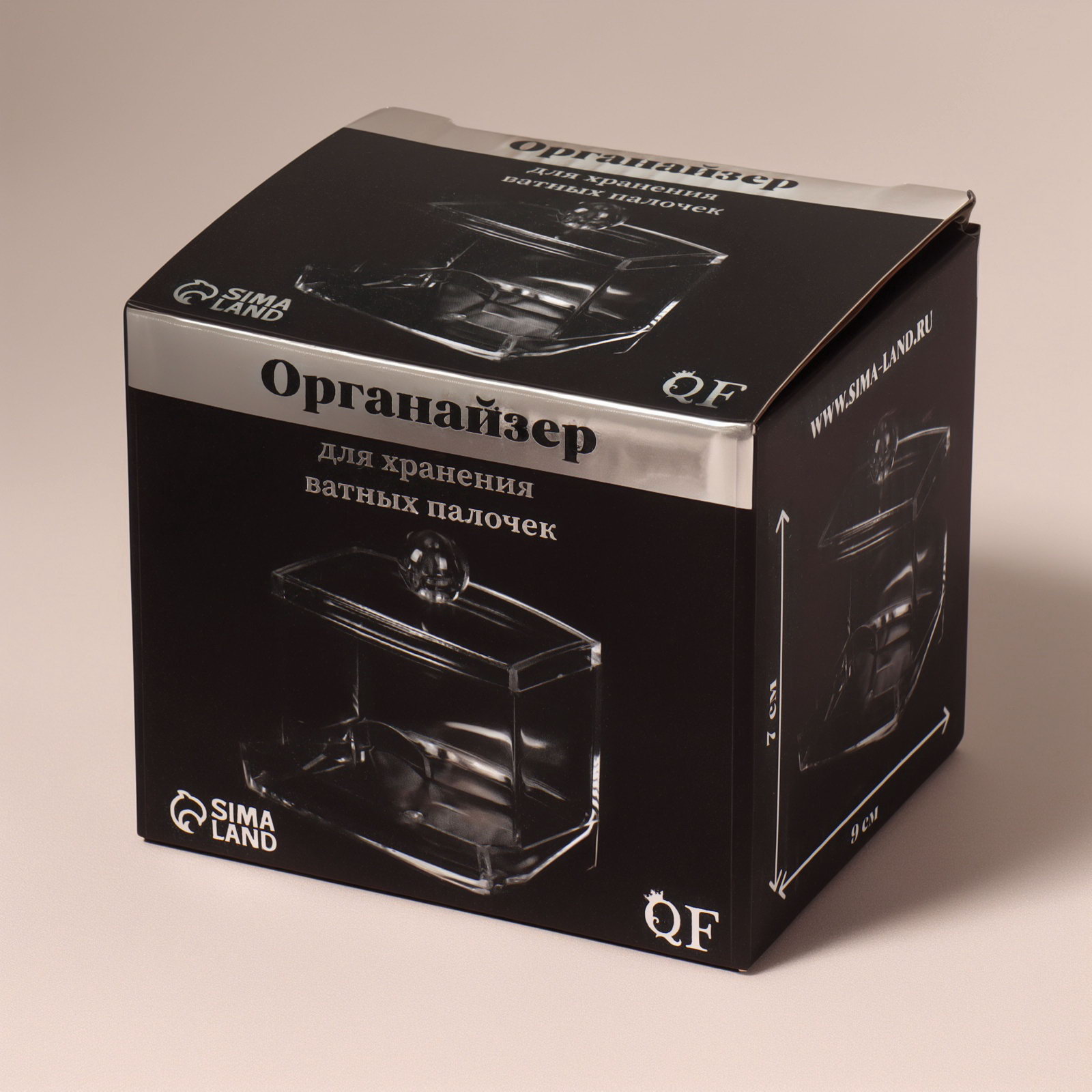 Органайзер для ватных палочек, с крышкой, 9x7x10 см, прозрачный, 10x9x7 см., QF, Китай