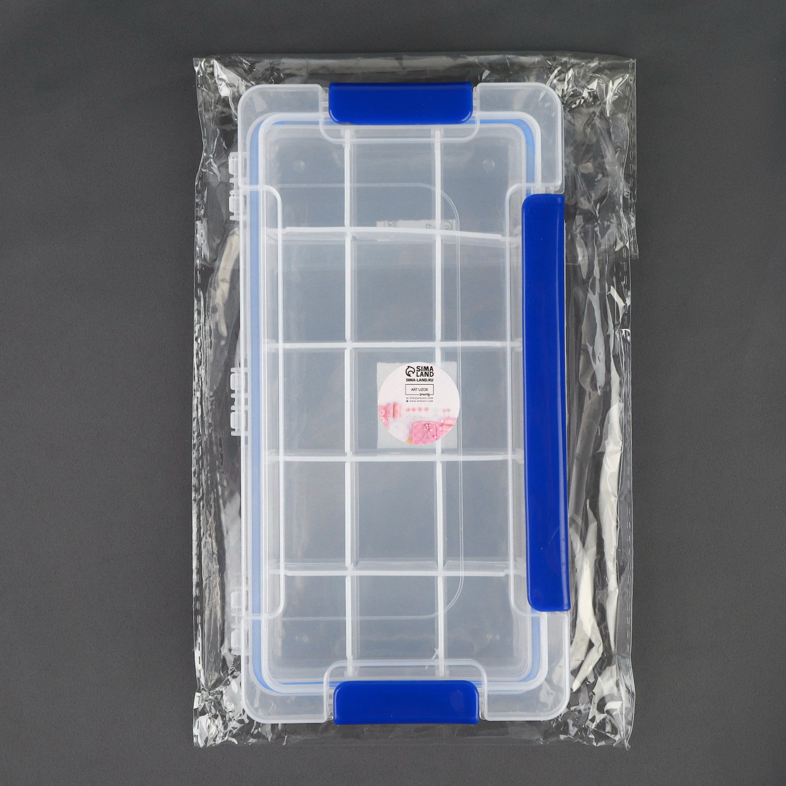 Органайзер для хранения мелочей, с подвесом, 15 ячеек, 23x12x3.5 см, прозрачный, синий, 12x23x3.5 см., Арт Узор, Китай