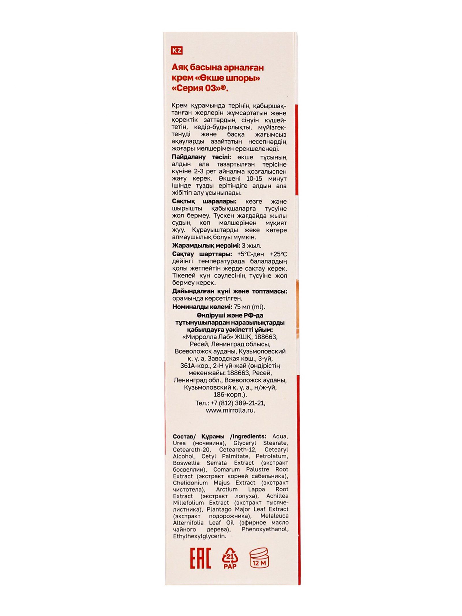 Крем "Серия 03. Пяточная шпора" для стоп, 75 мл, 3.5x5.5x15 см., Mirrolla, Россия
