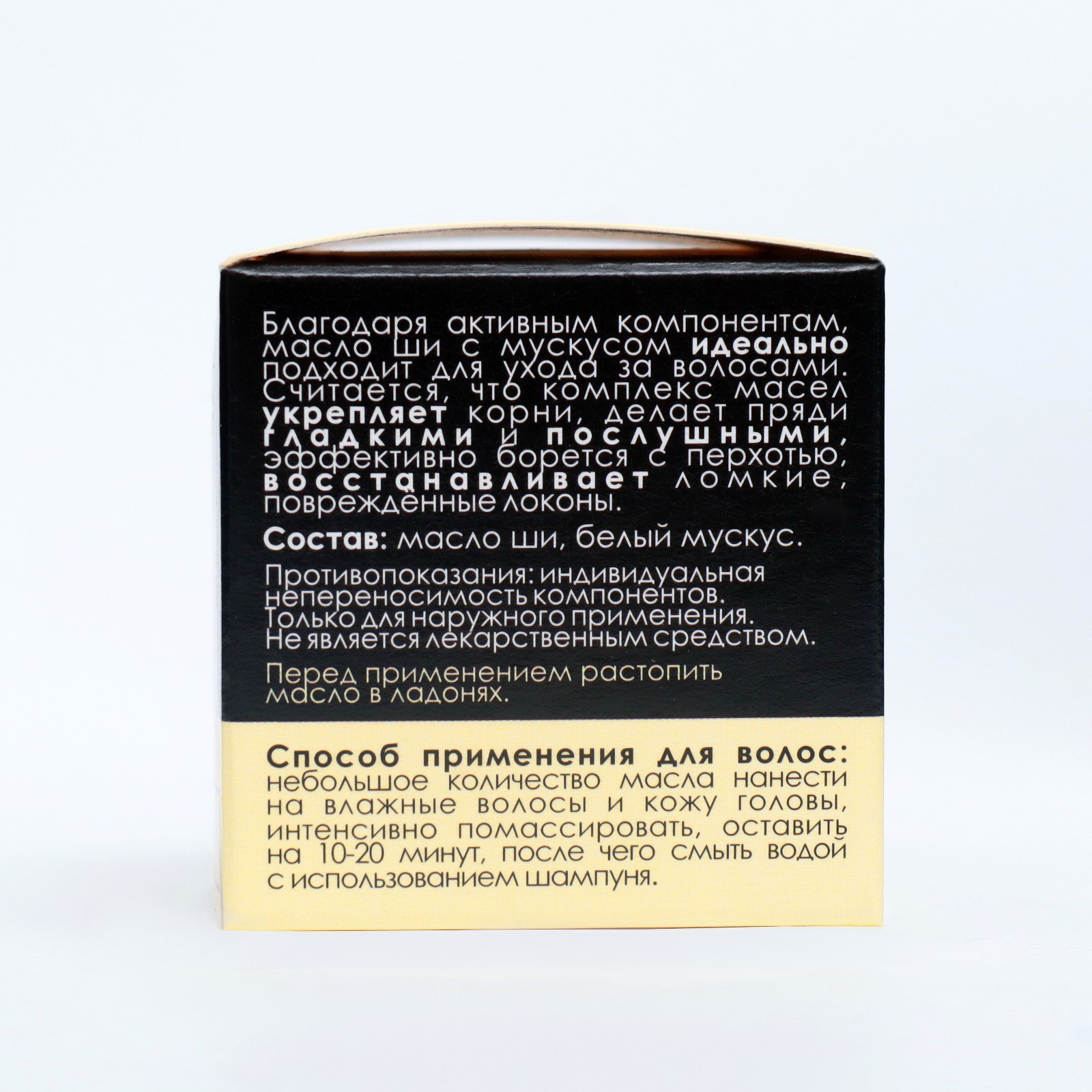 Размер упаковки: 4.5 x 4.5 x 4.5 см. Вид: Масло Вид: Масло tnved: 3304990000 Аромат: Белый мускус Вес, г/Объём, мл: 40 Твёрдый крем превосходно увлажняет кожу. Особенности: