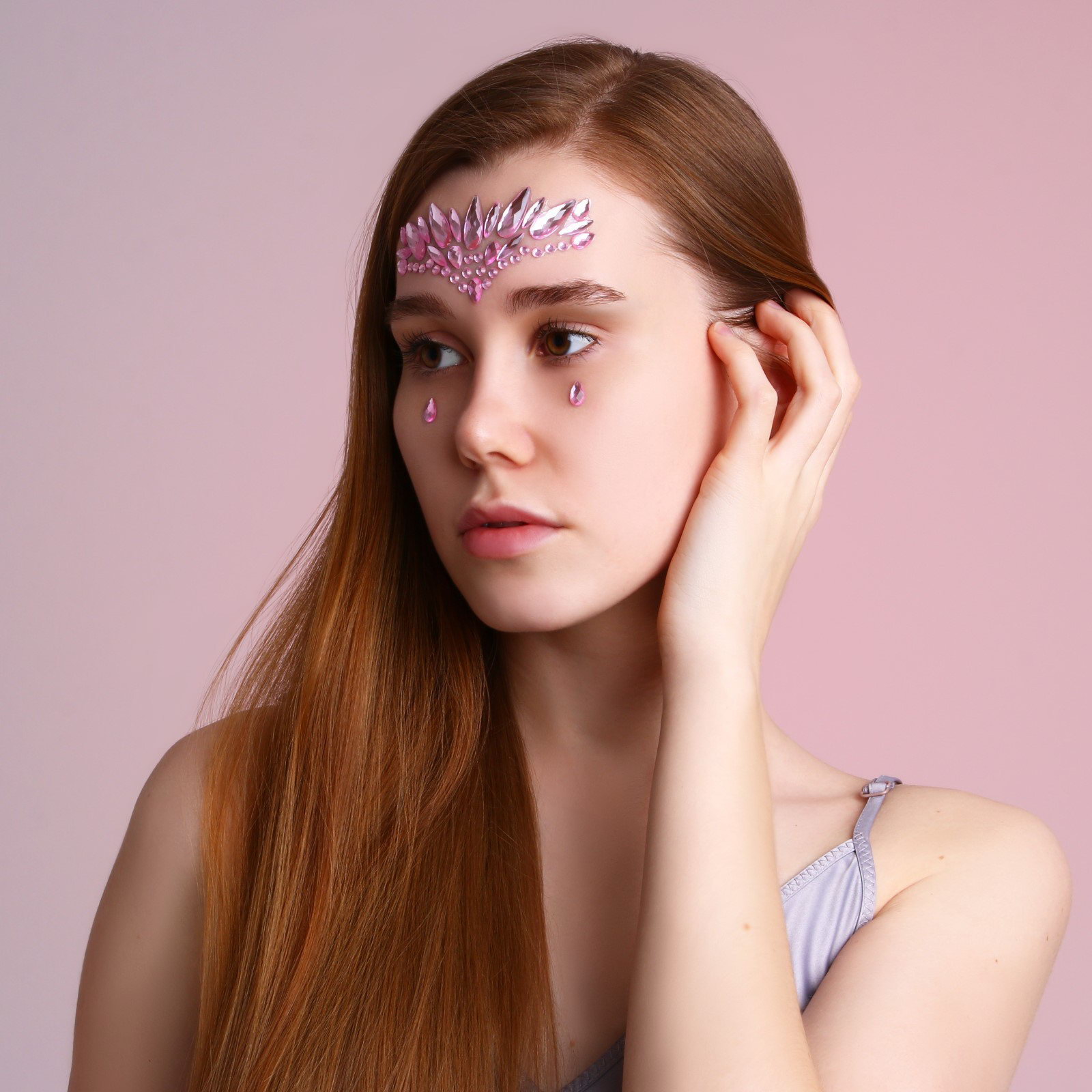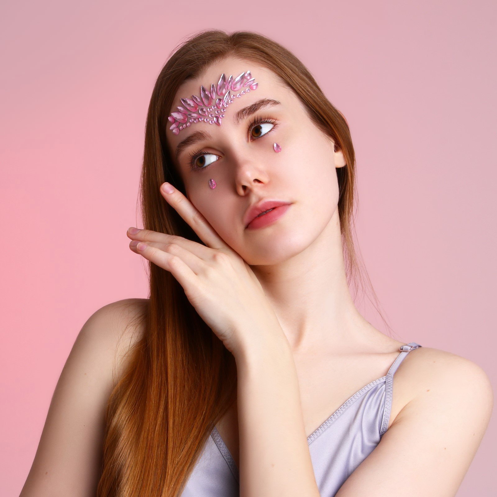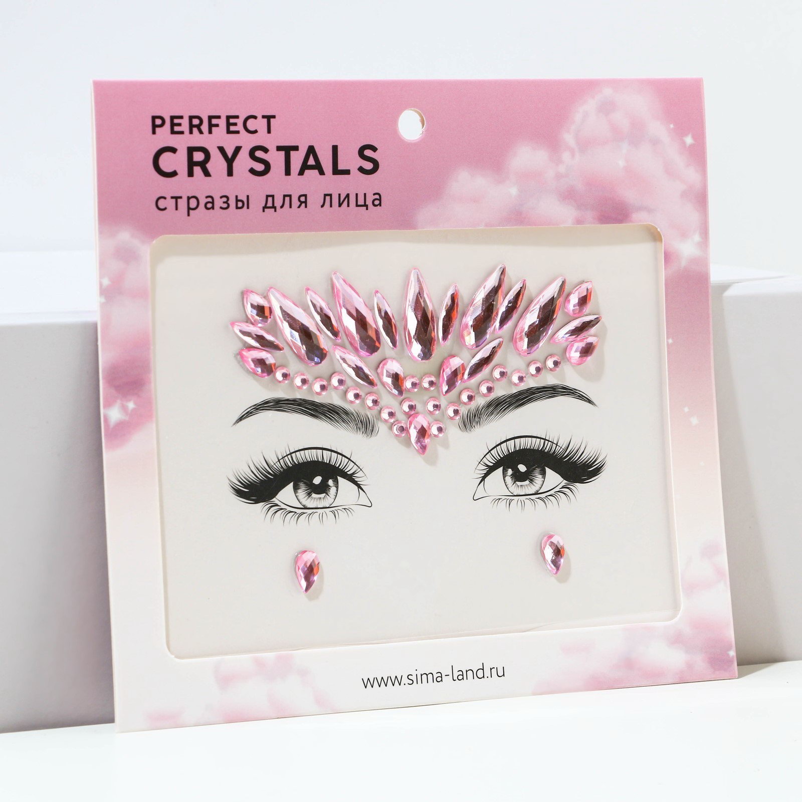 Стразы для лица "Сияй!", розовые, 0.5x16x14.5 см., Beauty Fox, Китай