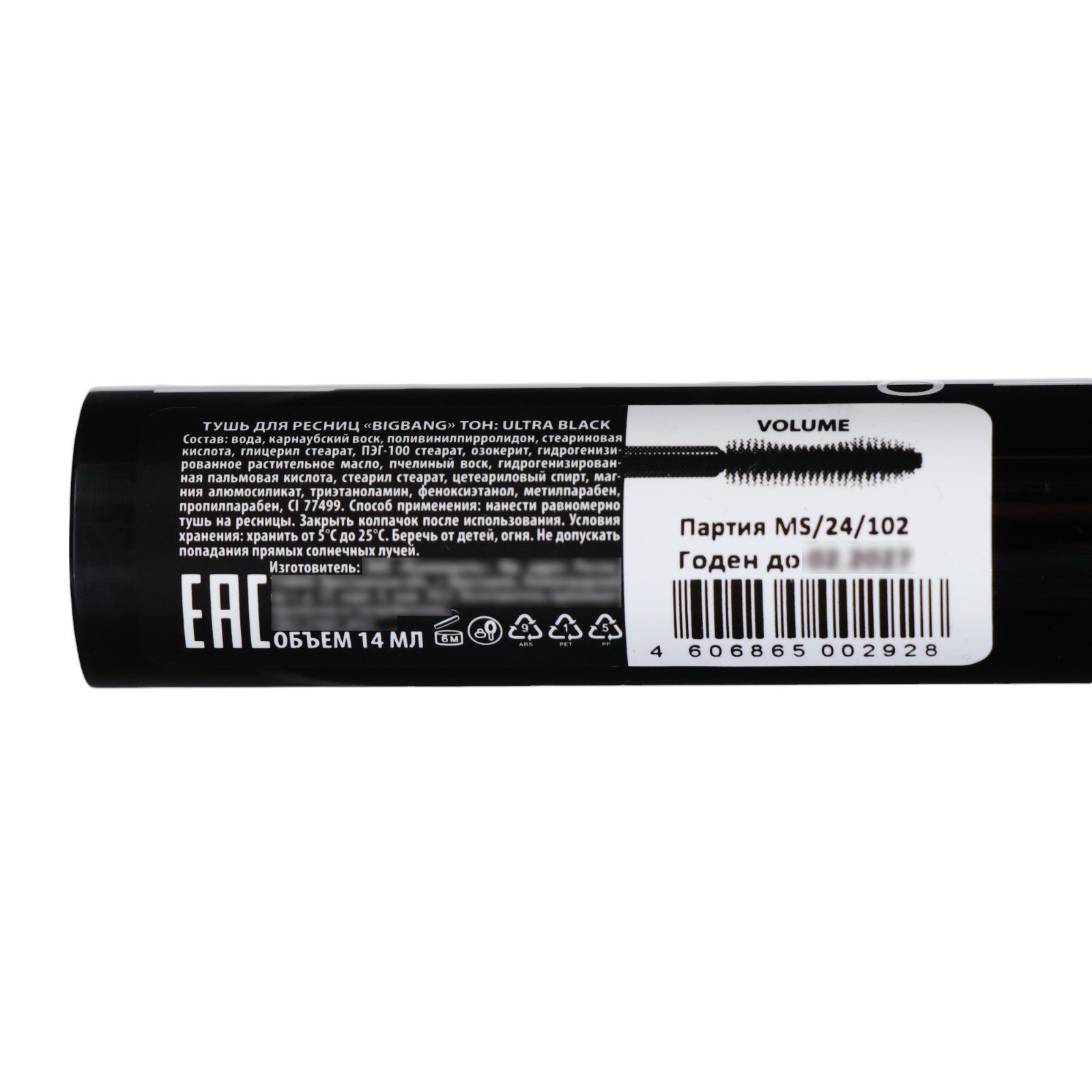 Тушь для ресниц объемная, Jean Mishel, BIGbang черная, силиконовая кисть, 14 мл, JEANMISHEL, Россия