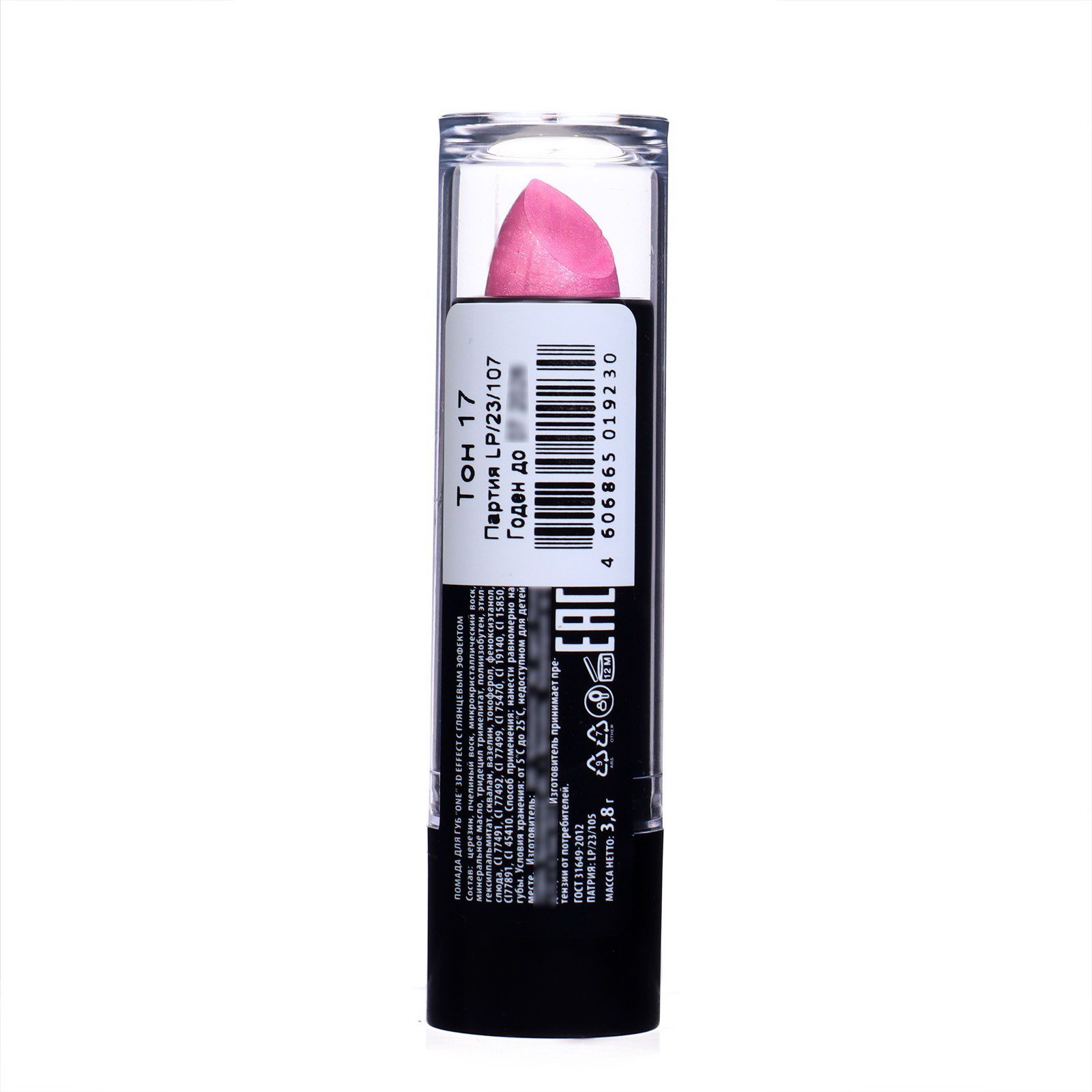 Помада для губ 3D эффект тон 17 нежно-розовый перламутровый, 14 г, JEANMISHEL, Россия