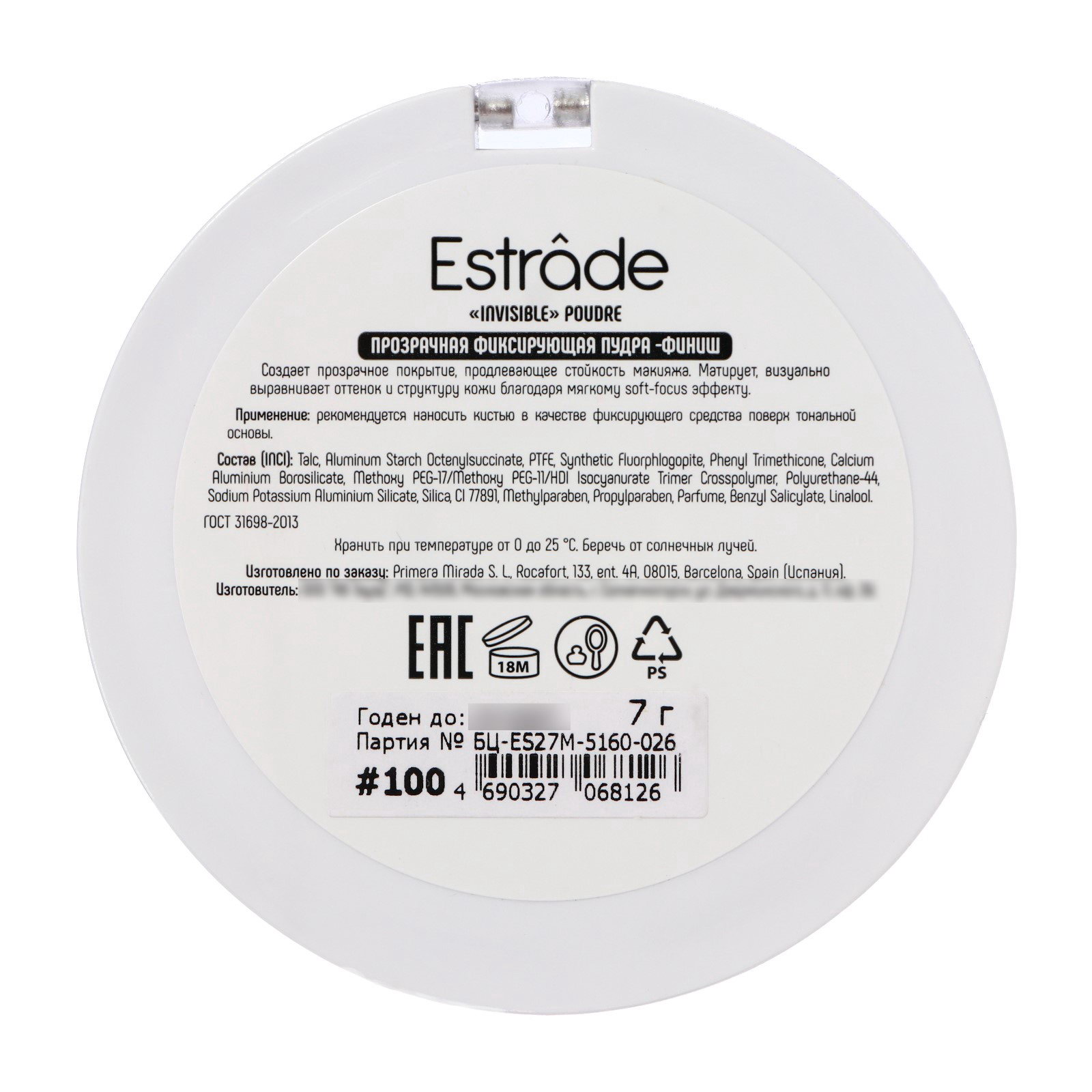 Пудра-финиш для лица Invisible, тон 100, прозрачный, 7.4x7.4x1.4 см., Estrade, Россия