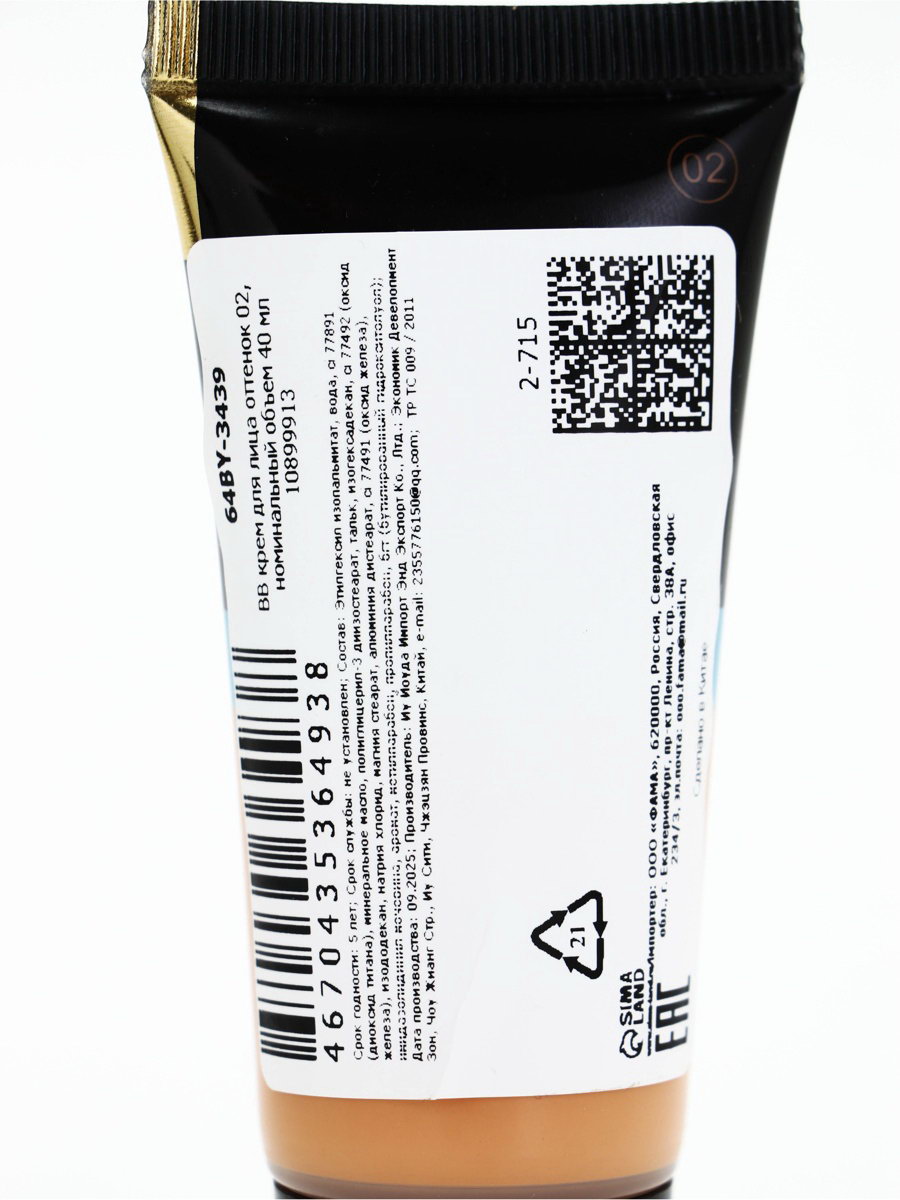BB крем для лица, оттенок 02, 40 мл, Китай