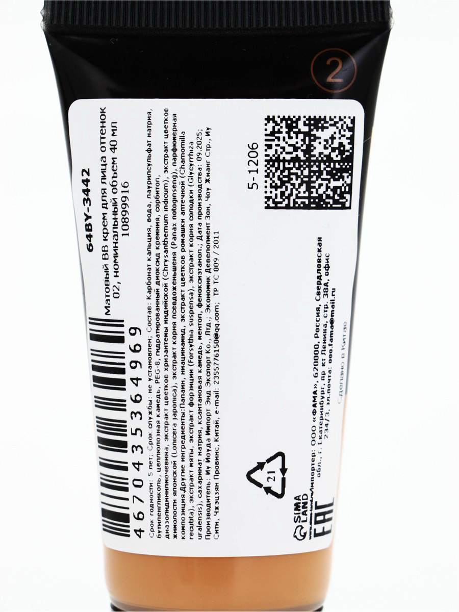 BB крем матовый для лица, оттенок 02, 40 мл, Китай