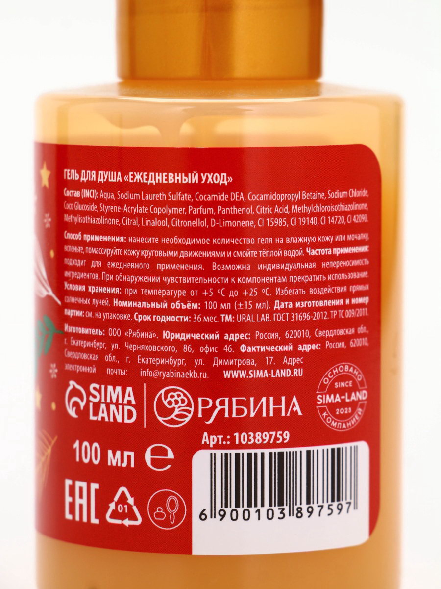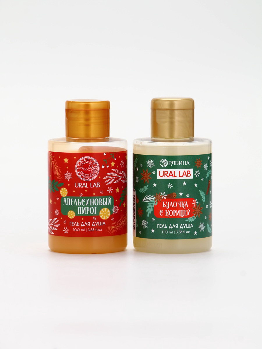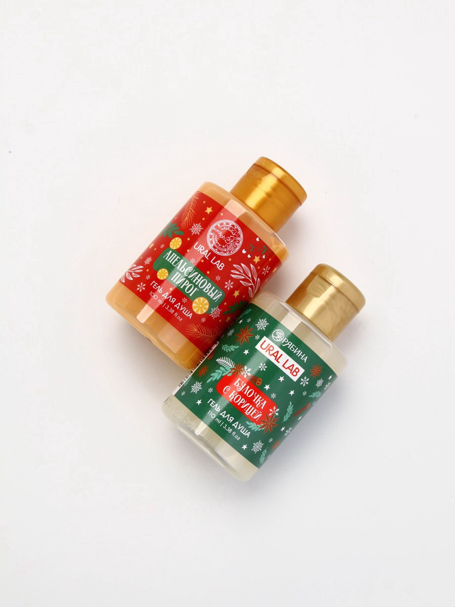 Подарочный набор новогодний в санях: гель для душа 2 шт., соль для ванны и мочалка, URAL LAB, Россия
