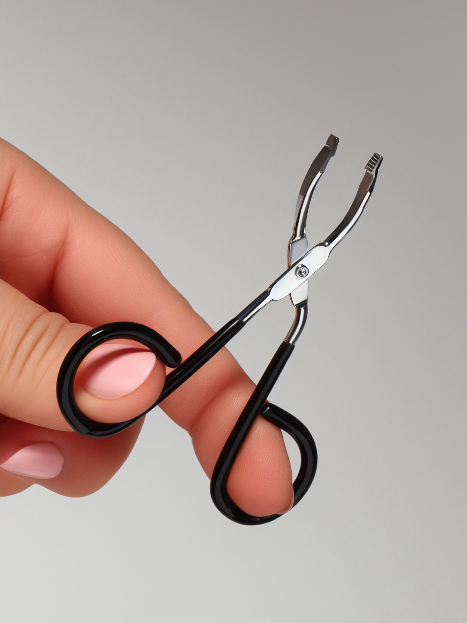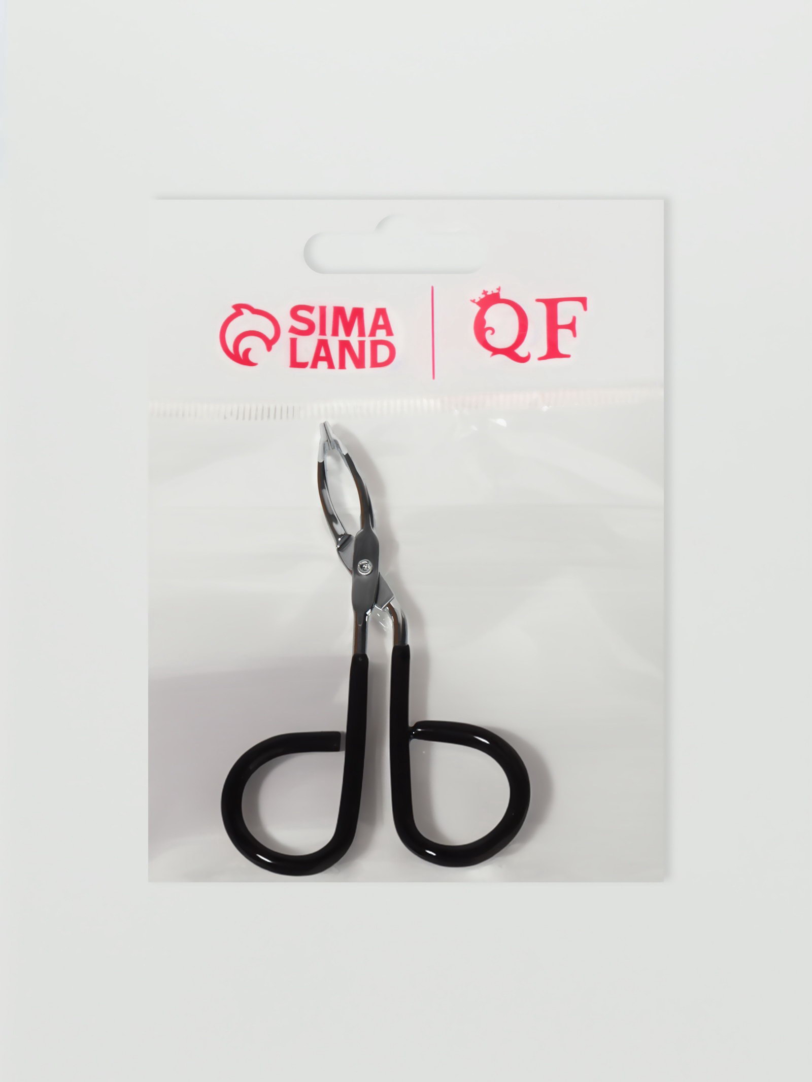 Пинцет в форме ножниц, прорезиненные ручки, 8 см, чёрный, серебристый, 5.3x8x0.5 см., QF, Китай