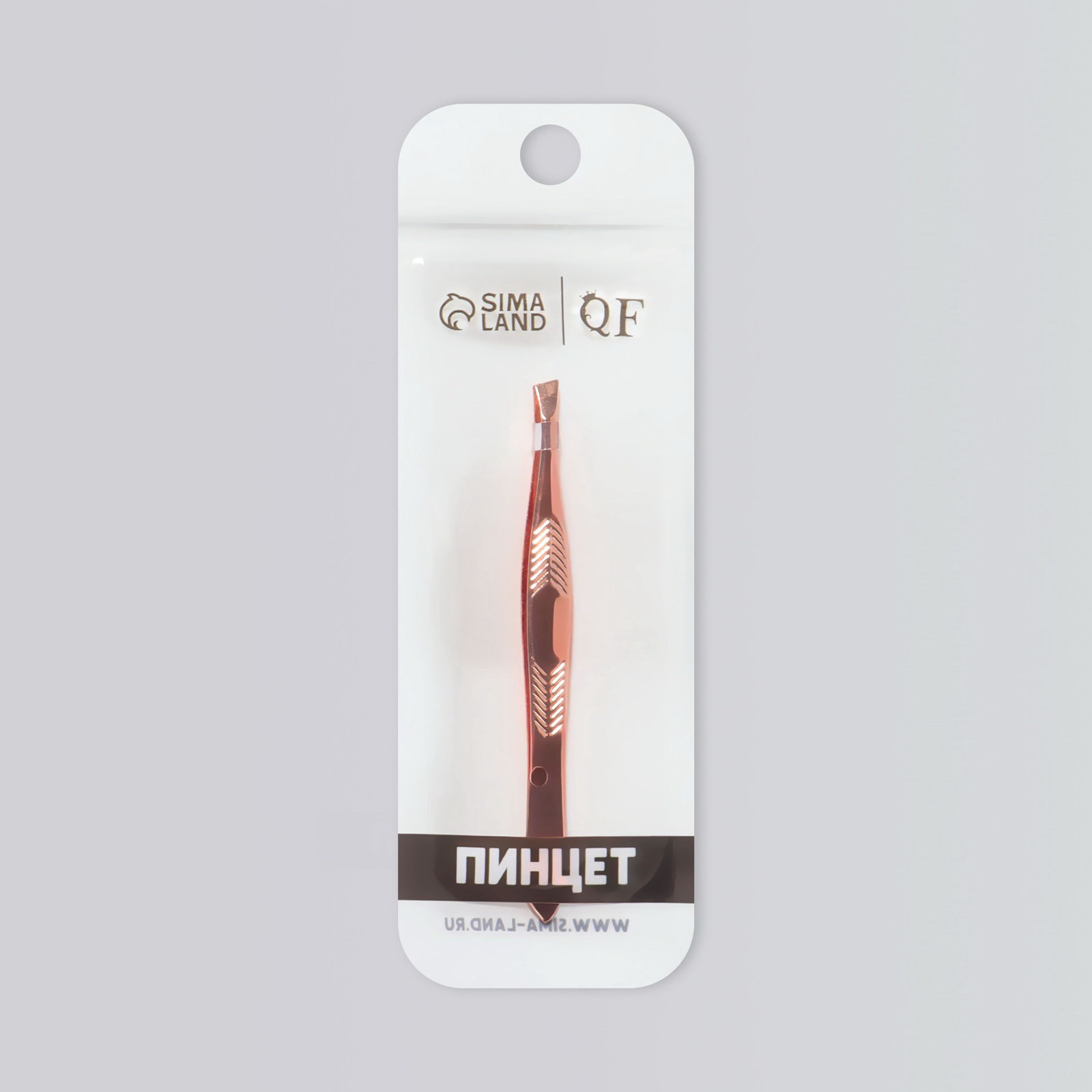 Пинцет скошенный, узкий, 9 см, цвет розовое золото, 0.5x9x0.5 см., QF, Китай