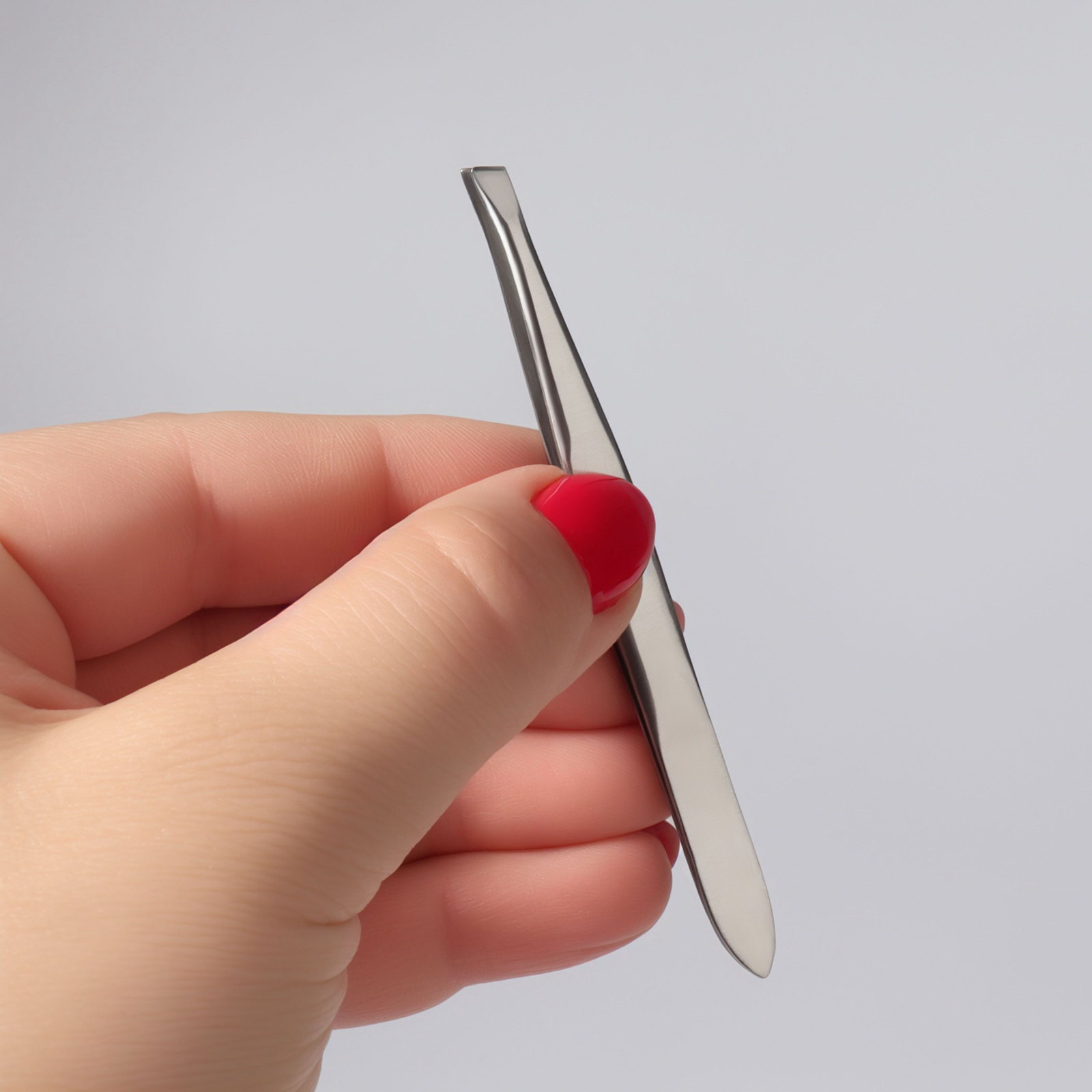 Пинцет для бровей и ресниц, со скошенным краем, узкий, 9 см, 0.7x9x0.5 см., QF, Китай