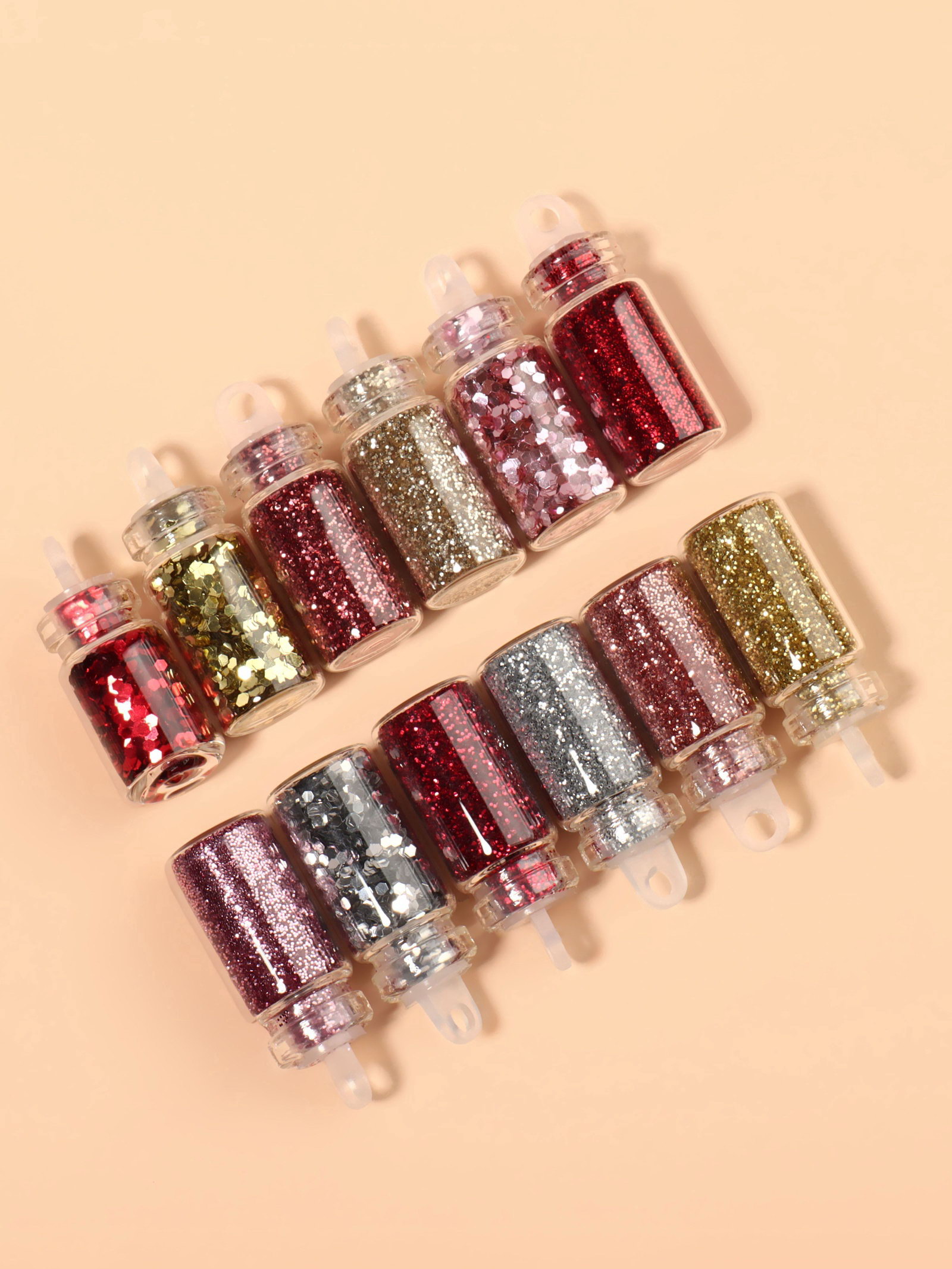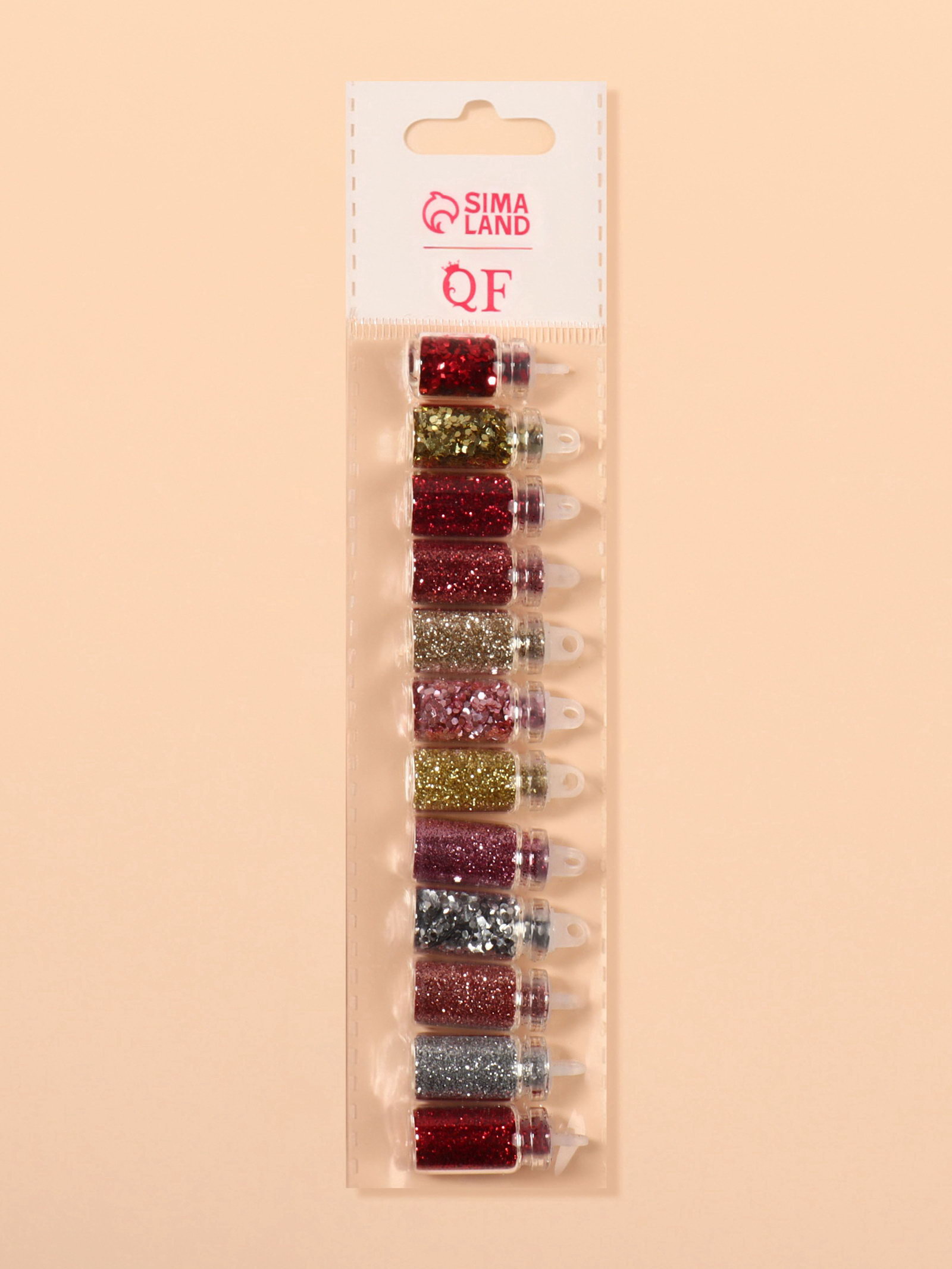 Блёстки для декора "Нежность", мелкие/средние/крупные, 12 бутылочек, 2.8x13x2 см., QF, Китай