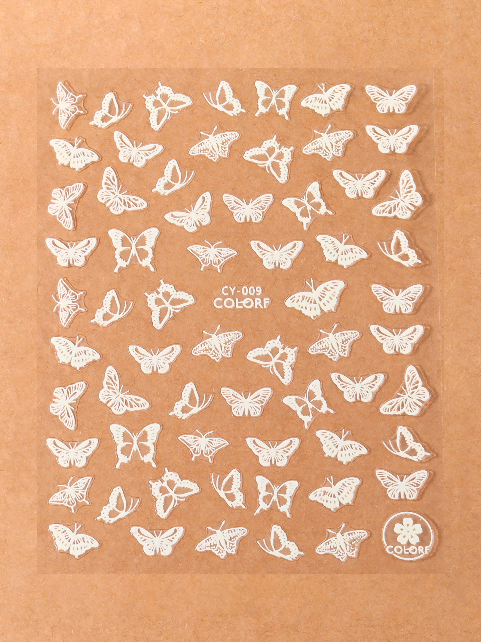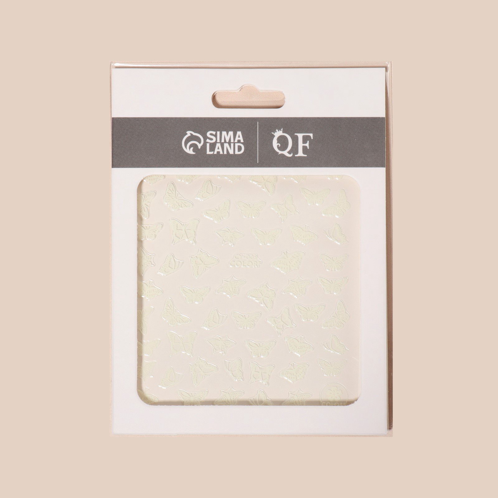 Наклейки для ногтей "Бабочки", флуоресцентные, белые, 8x10.2x0.1 см., QF, Китай