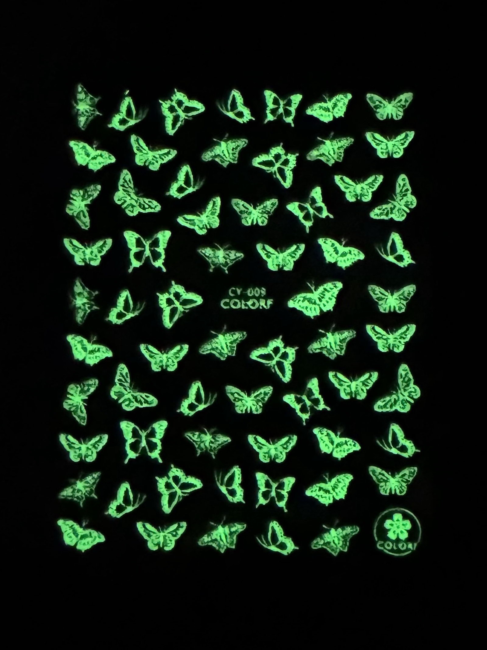 Цвет: Белый, Зелёный Тематика: Бабочки, Животный мир Размер упаковки: 10 x 0.1 x 15.5 см. Детские: Нет В наборе, шт.: 1 Вид упаковки: Пакет Вид упаковки: Пакет tnved: 4911990000 Температурное ограничение: Нет Тематика праздника: 8 Марта Набор: Нет Особенности: Светятся в темноте Вид декора: Наклейки Наклейки для дизайна ногтей подойдут для нанесения на гель-лак и обычное базовое покрытие. Способ применения