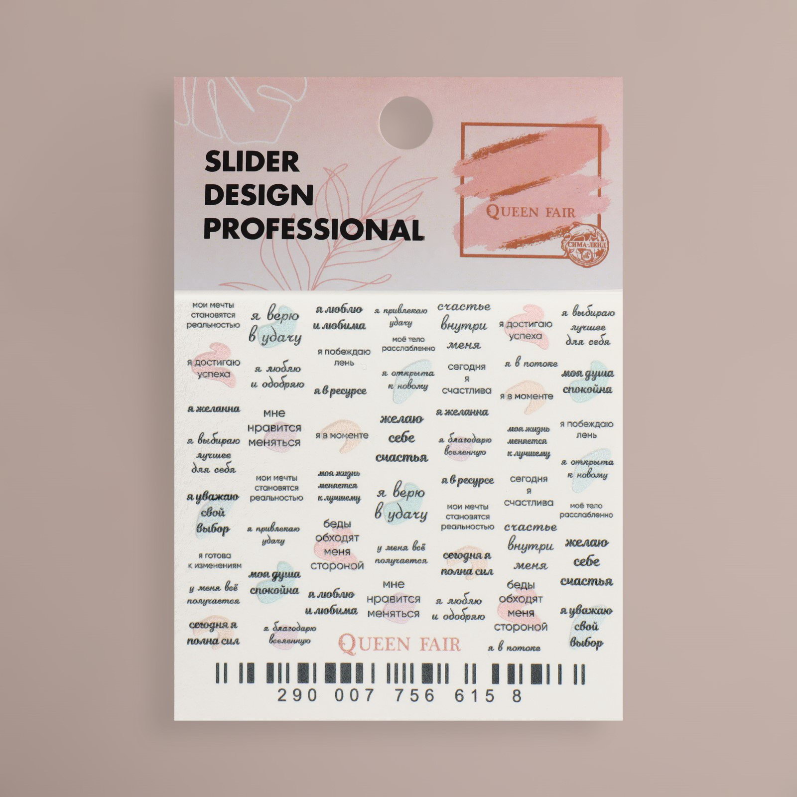 Слайдеры для ногтей "Аффирмации", разноцветные, 7x6.5x0.01 см., QF, Россия