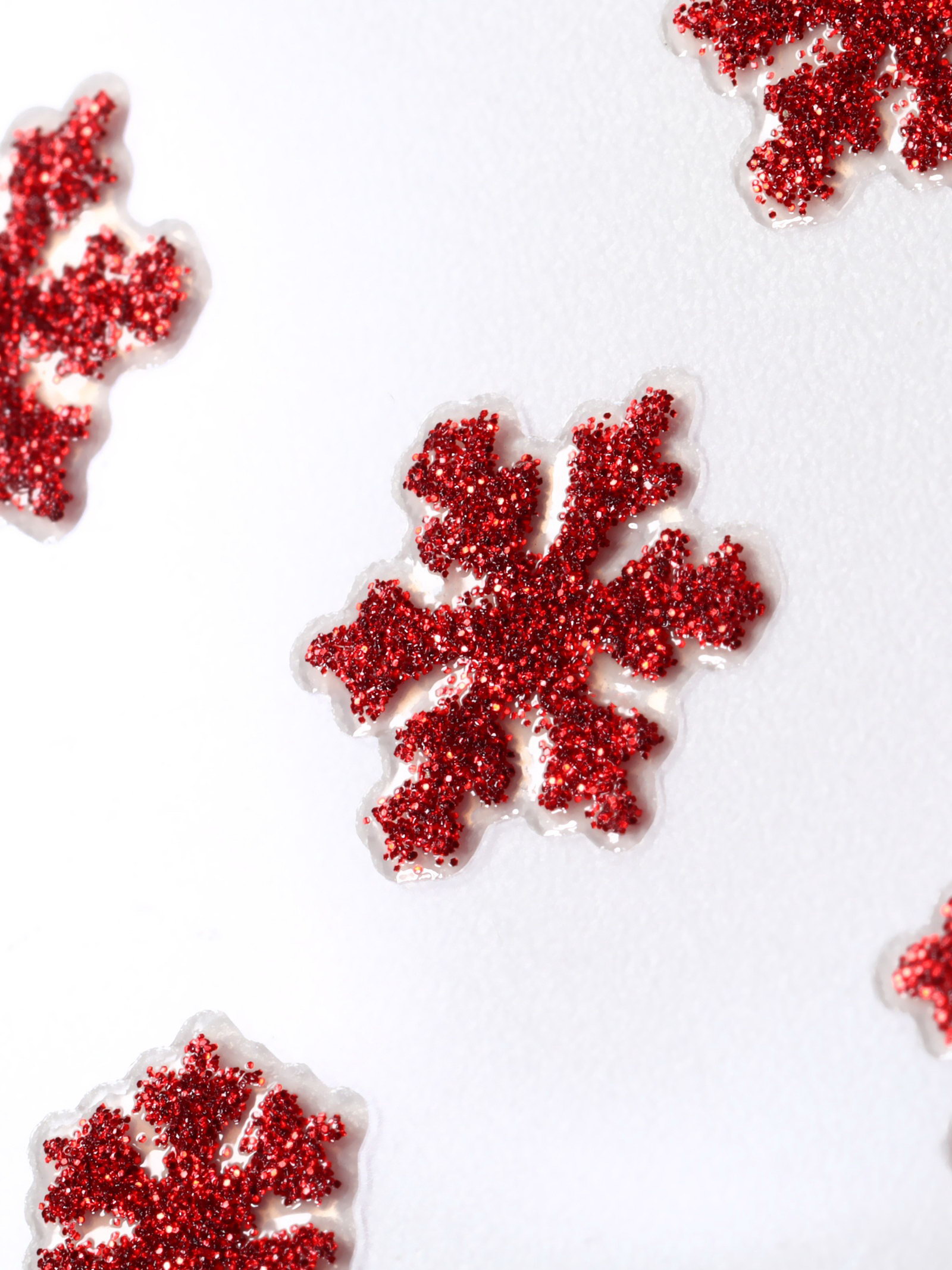 Наклейки для ногтей "Снежинки", с блёстками, красные, 8x10x0.1 см., QF, Китай