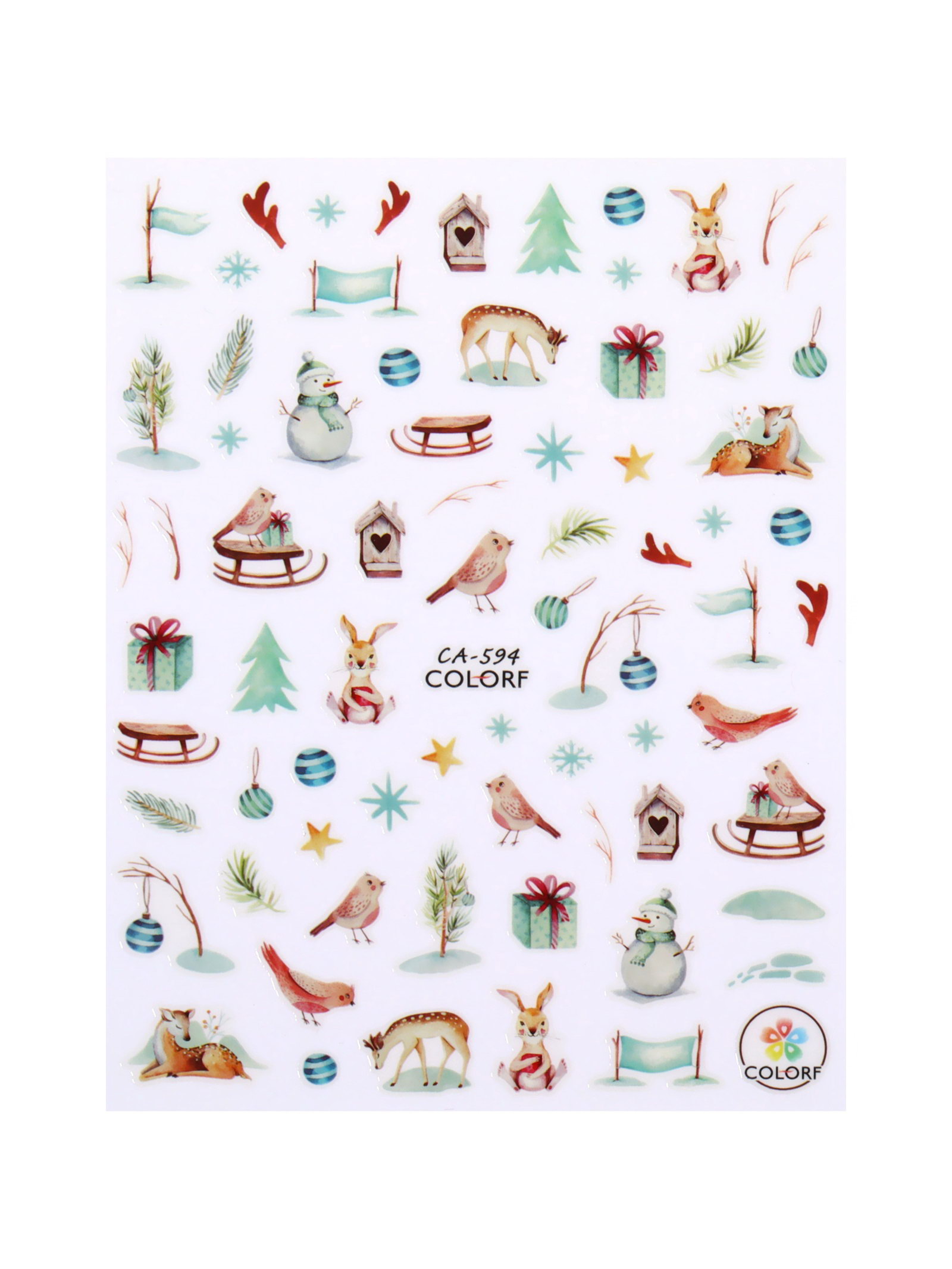 Наклейки для ногтей "Зимний лес", разноцветные, 8x10.2x0.1 см., QF, Китай