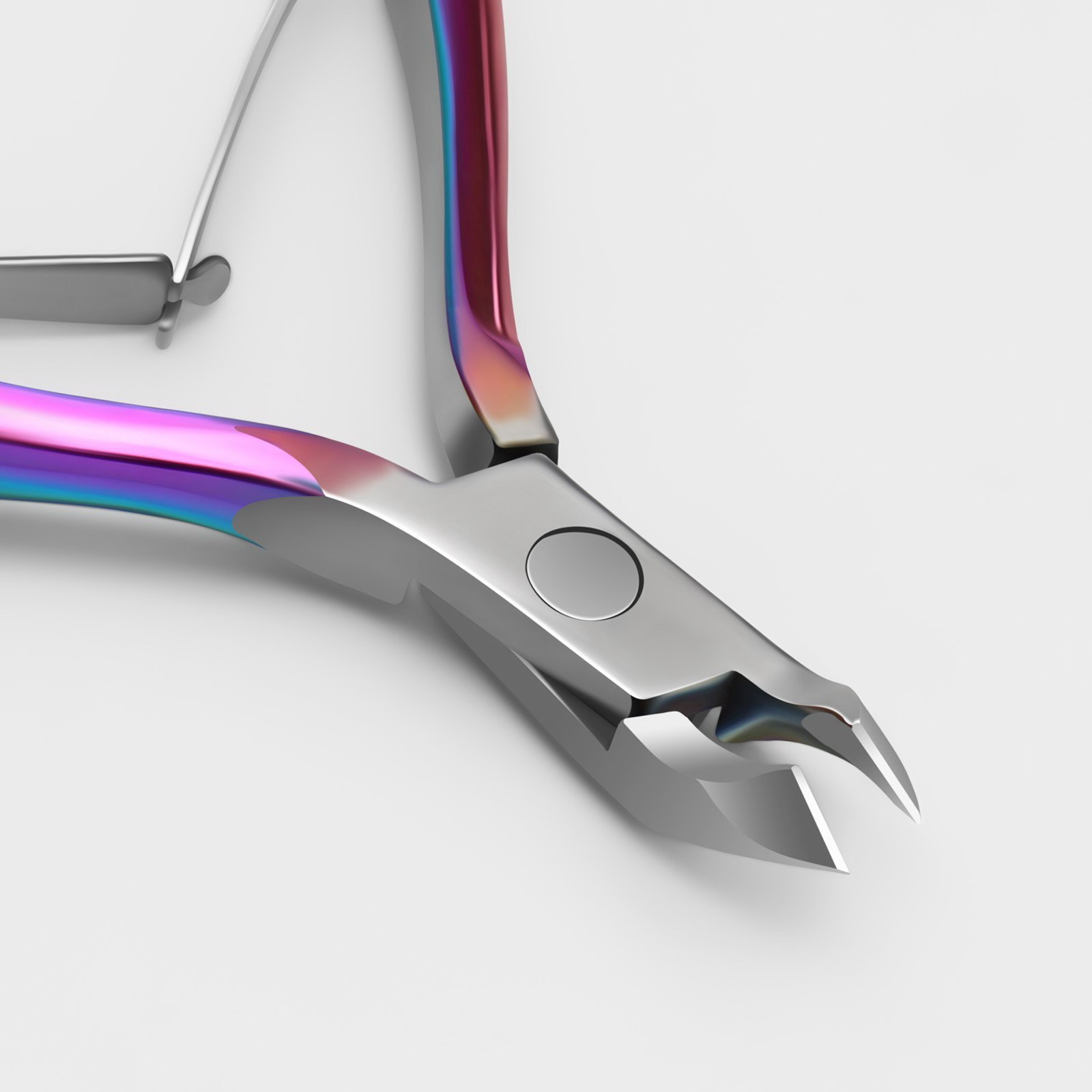 Кусачки маникюрные для кутикулы, изогнутое лезвие, двойная пружина, 10.5 см, длина лезвия-5 мм, цвет хамелеон, 6.5x10.5x1 см., QF, Китай