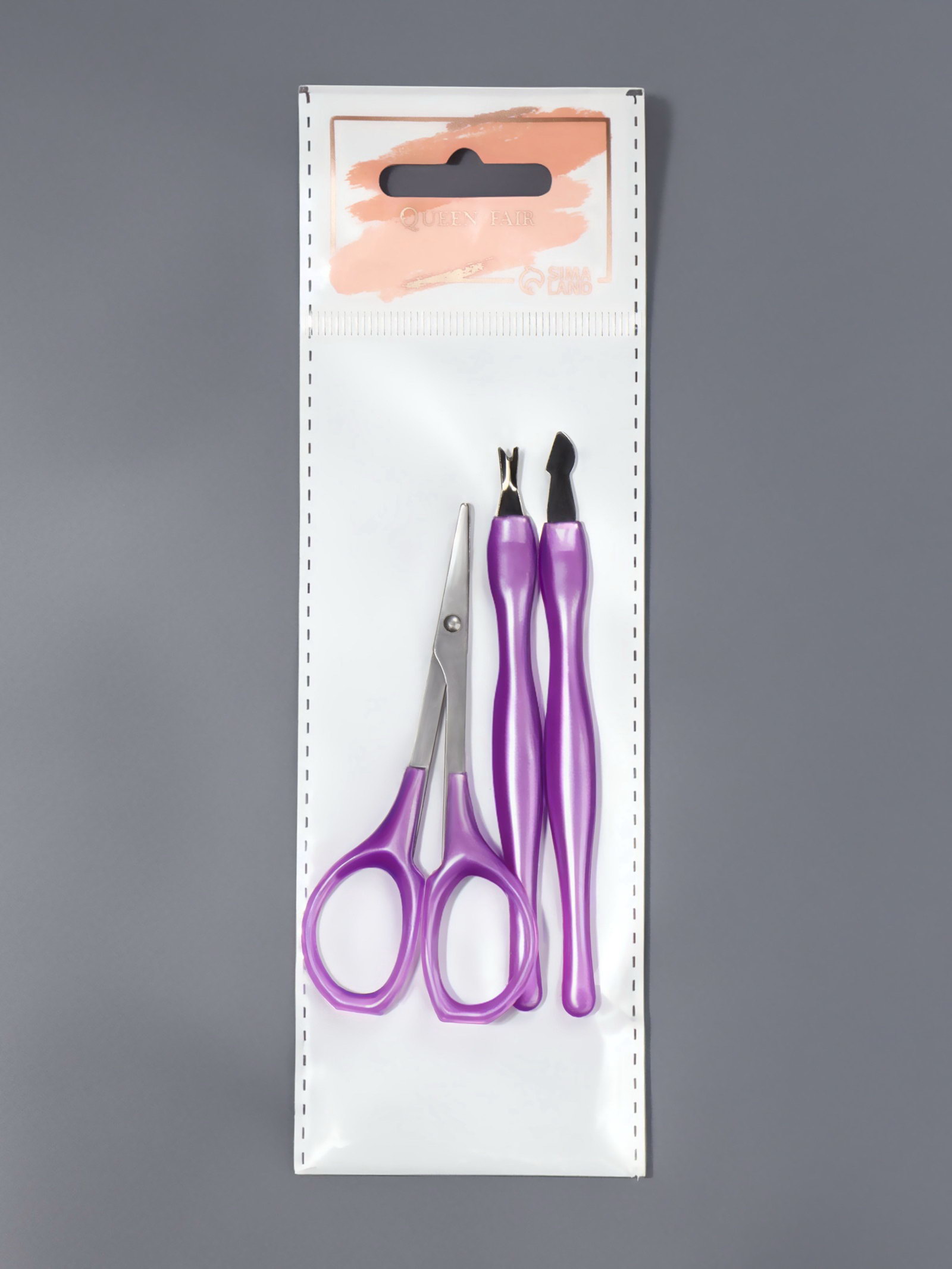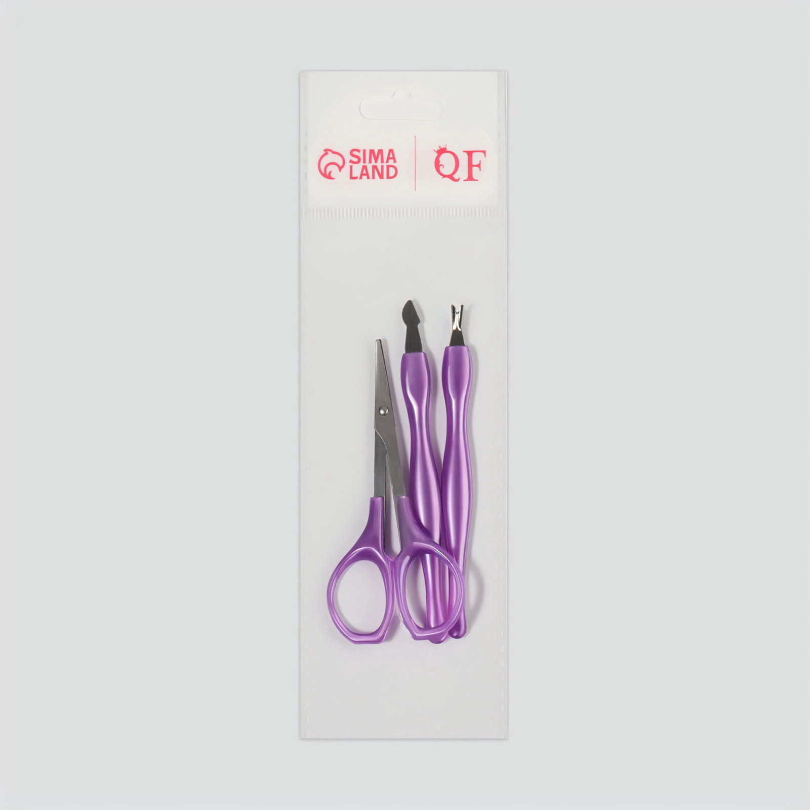 Набор маникюрный, 3 предмета, фиолетовый, серебристый, 5x10x0.5 см., QF, Китай