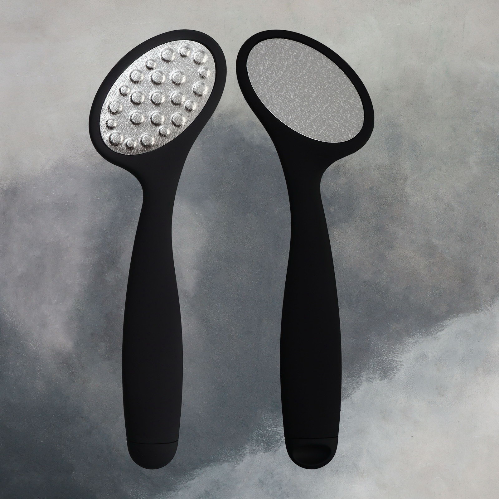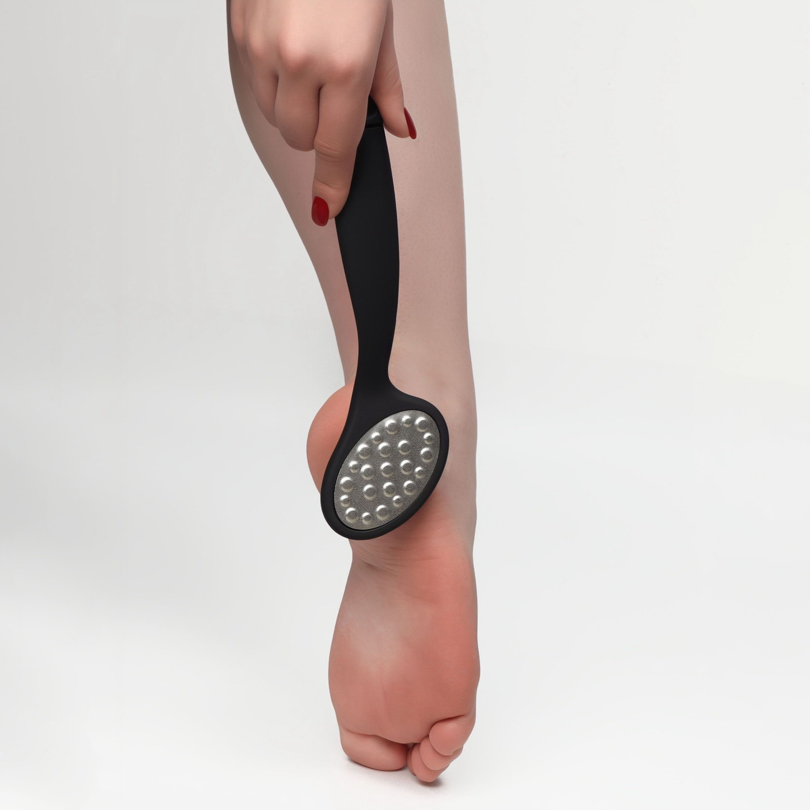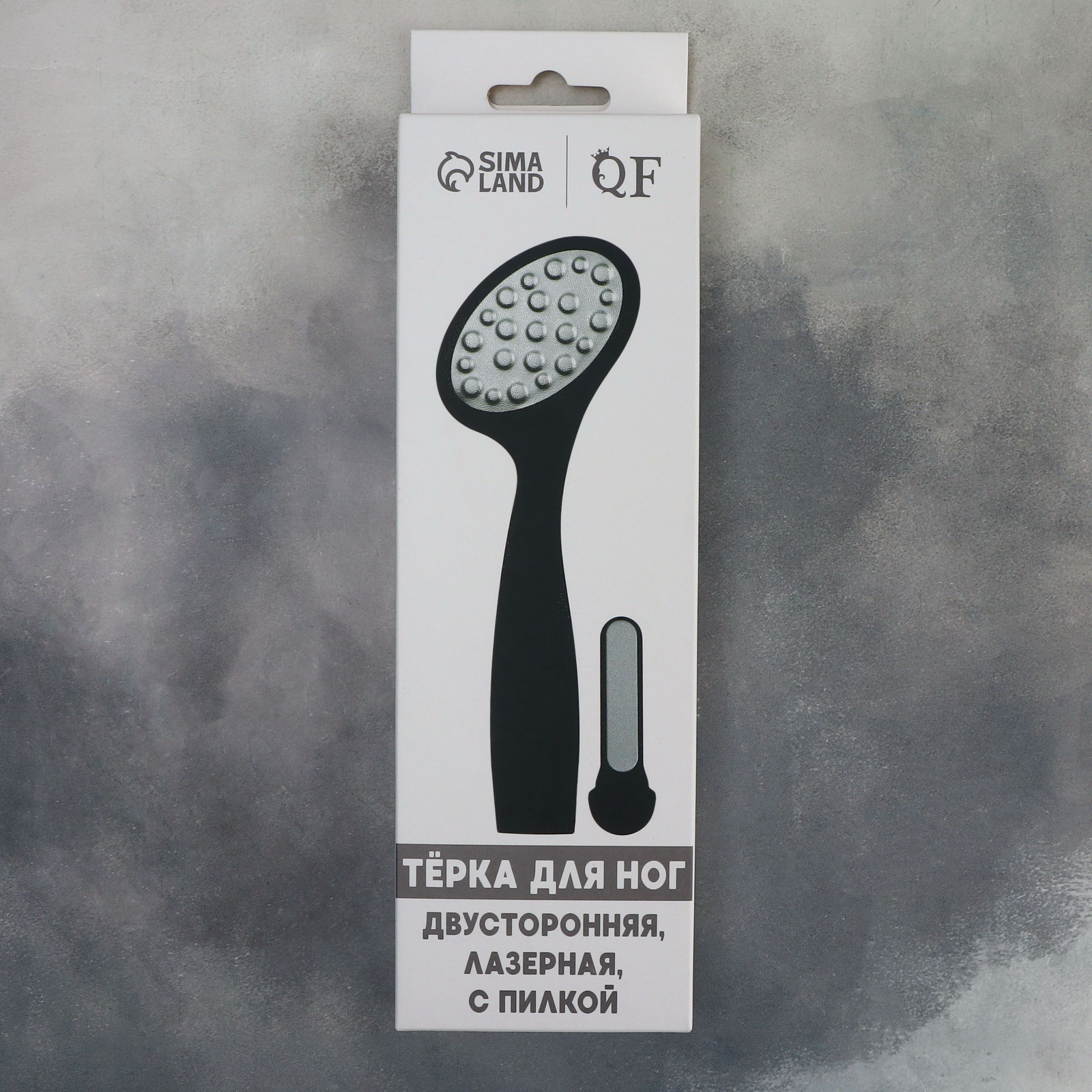 Пилка для пяток, лазерная, двусторонняя, с пилкой, прорезиненная ручка, 22 см, чёрная, 7x22x1.5 см., QF, Китай