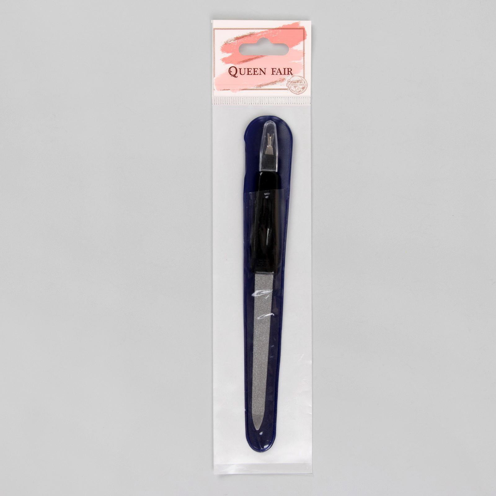 Пилка-триммер металлическая для ногтей, 17 см, с защитным колпачком, в чехле, чёрная, 1.5x17x0.3 см., QF, Китай