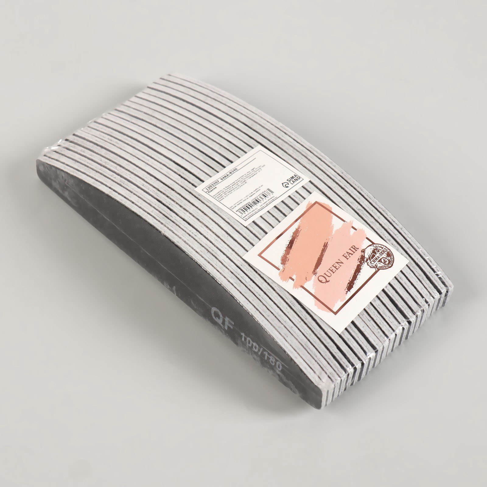 Пилка для ногтей, лодочка, 100/180 грит, 18 см, фасовка 20 шт., чёрная, 2.7x18x0.4 см., QF, Китай