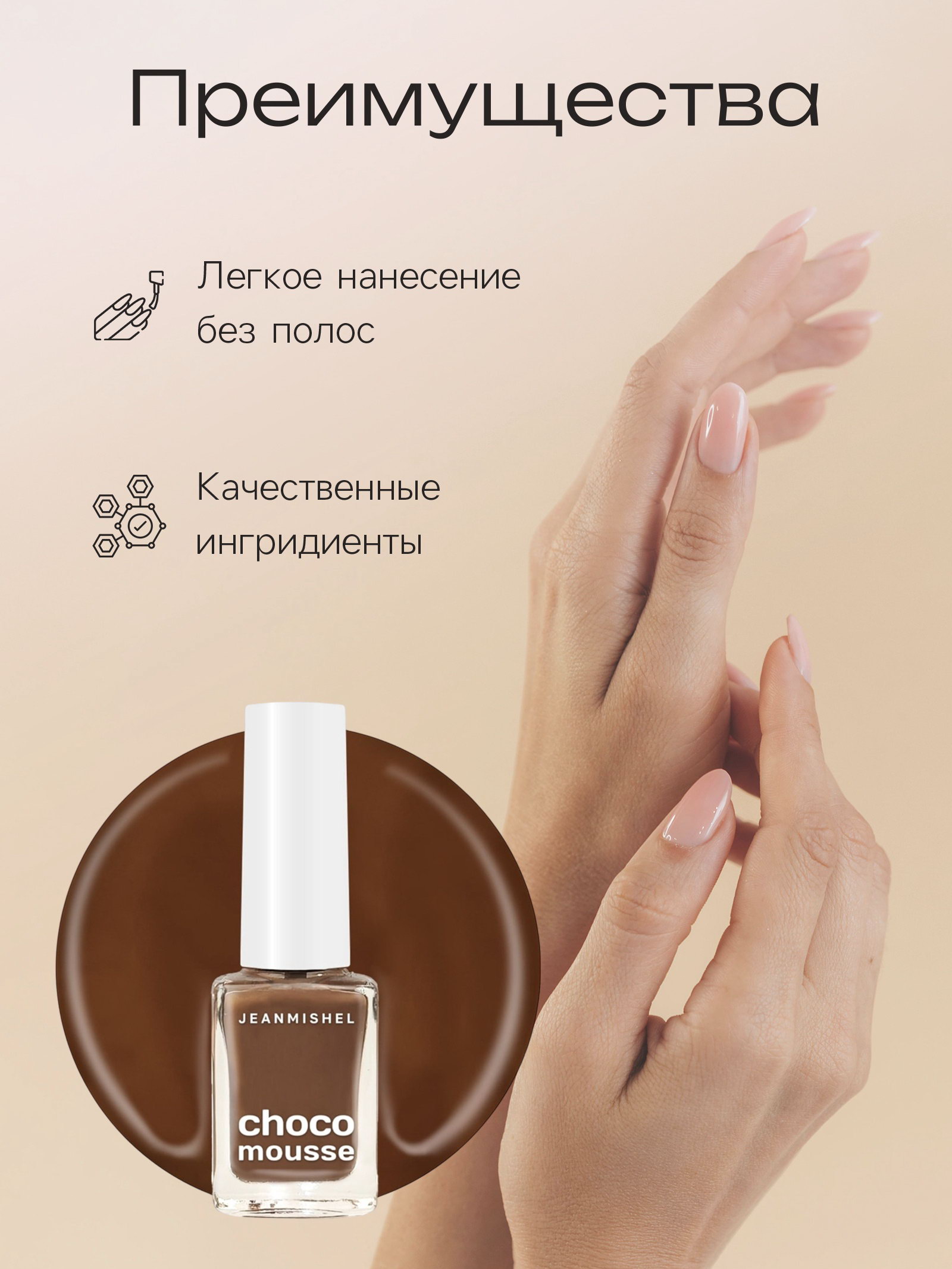 Лак для ногтей молочный шоколад, глянцевый, тон 464, 6 мл, 6 мл., JEANMISHEL, Россия