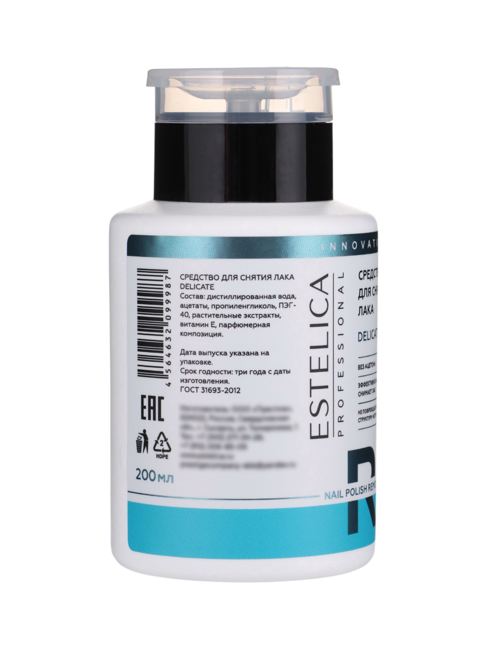 Вид: Без ацетона, Жидкость для снятия лака Размер упаковки: 6 x 6 x 11 см. tnved: 3304990000 Температурное ограничение: Нет Температурное ограничение: Нет ESTELICA PROFESSIONAL DELICATE, средство для снятия лака 200 мл (помпа) профессиональное деликатное средство, специально разработанное для мягкого и эффективного удаления всех видов лаков с натуральных ногтей. Формула бережно ухаживает за ногтевой пластиной и кожей вокруг ногтей, не пересушивает их и не повреждает внешний вид ногтей. Состав средства включает экстракты ромашки и календулы, которые успокаивают и защищают кожу от раздражений, а витамин Е укрепляет и питает ногти, поддерживая их здоровье. Без ацетона, подходит для частого применения и для чувствительных ногтей. Способ применения: нанесите средство на ватный диск, приложите к ногтю на 3–5 секунд и мягкими движениями удалите лак. При необходимости повторите. Меры предосторожности: хранить в местах, недоступных детям, и вдали от огня. Не принимать внутрь. При попадании в глаза промыть водой и при необходимости обратиться к врачу. Состав: ацетаты, пропиленгликоль, ПЭГ-40, растительные экстракты (ромашка, календула), витамин Е, дистиллированная вода, парфюмерная композиция. | ||