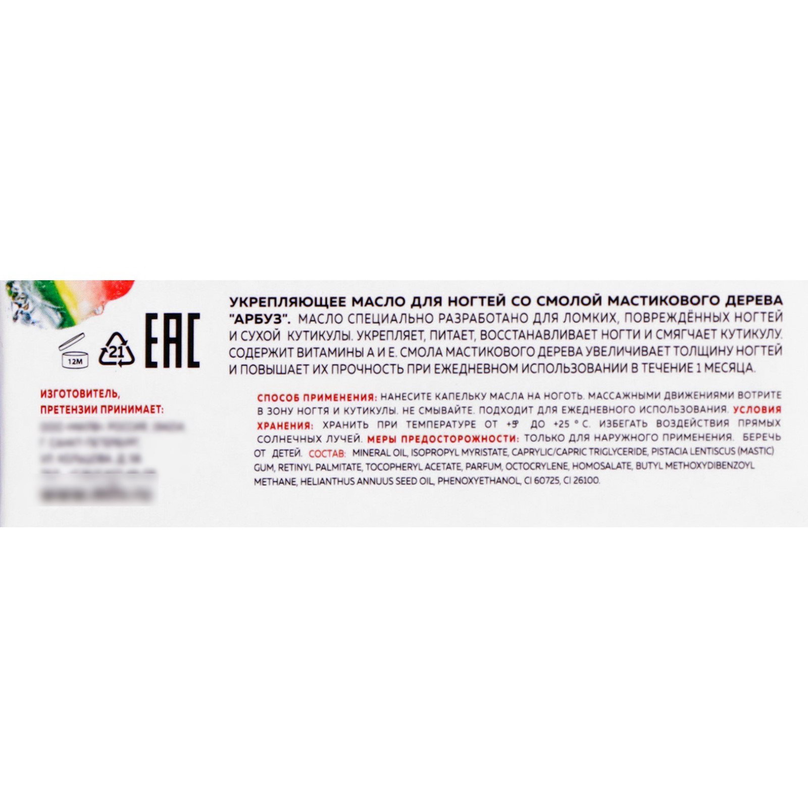 Укрепляющее масло для ногтей со смолой мастикового дерева "Арбуз", 15 мл, 3x3x9.5 см., MILV, Россия