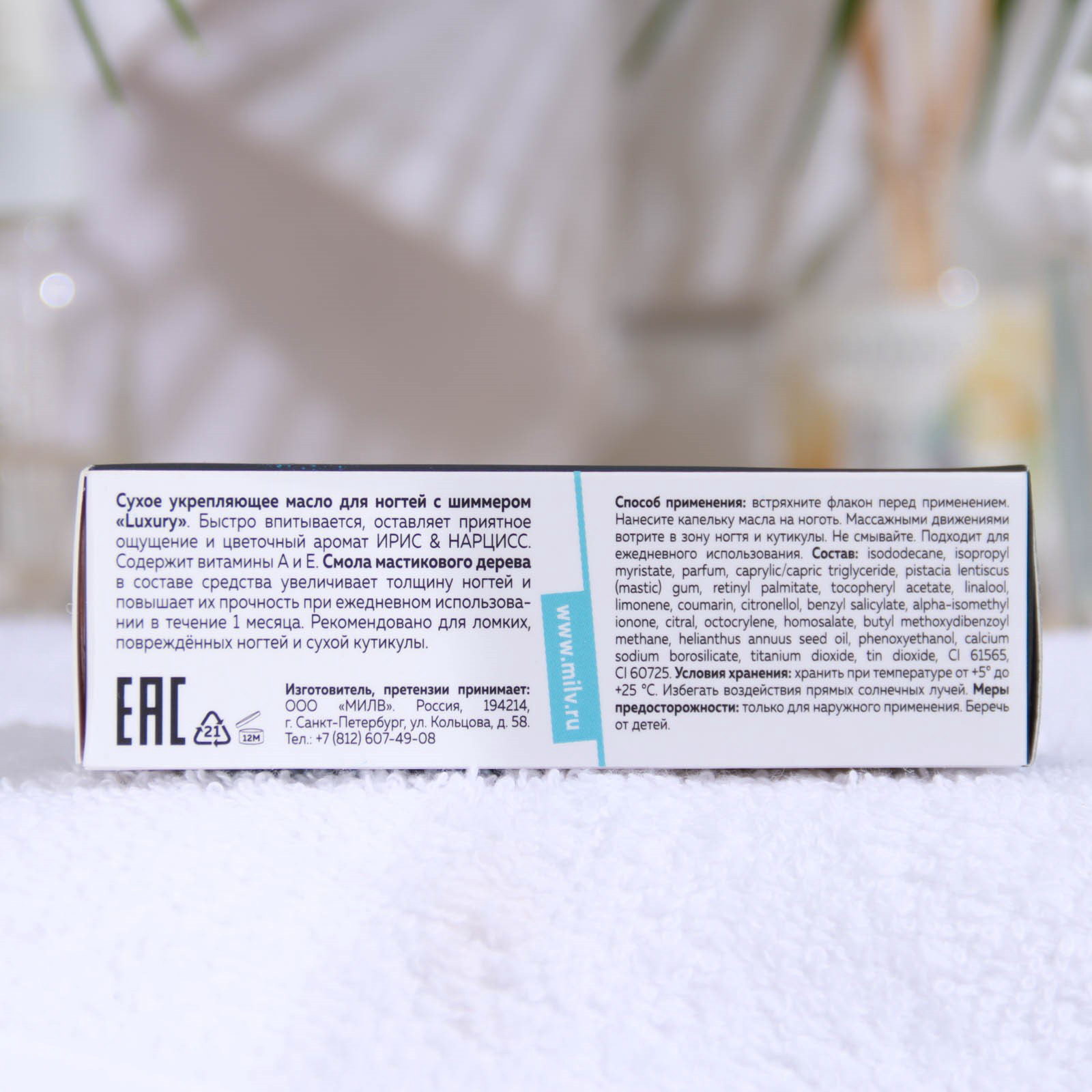 Сухое укрепляющее масло для ногтей Luxury, с шиммером, 15 мл, 15 мл., MILV, Россия