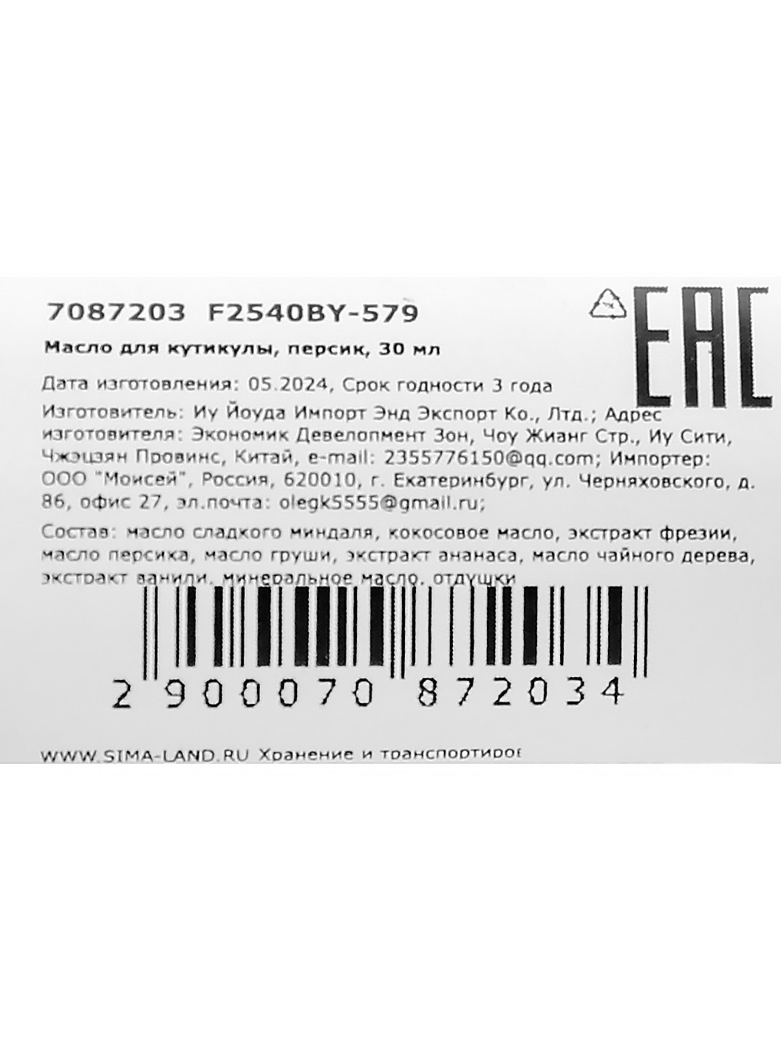 Масло для увлажнения и питания кутикулы 30 мл, персик, 5x5x5 см., Shenjoy, Китай