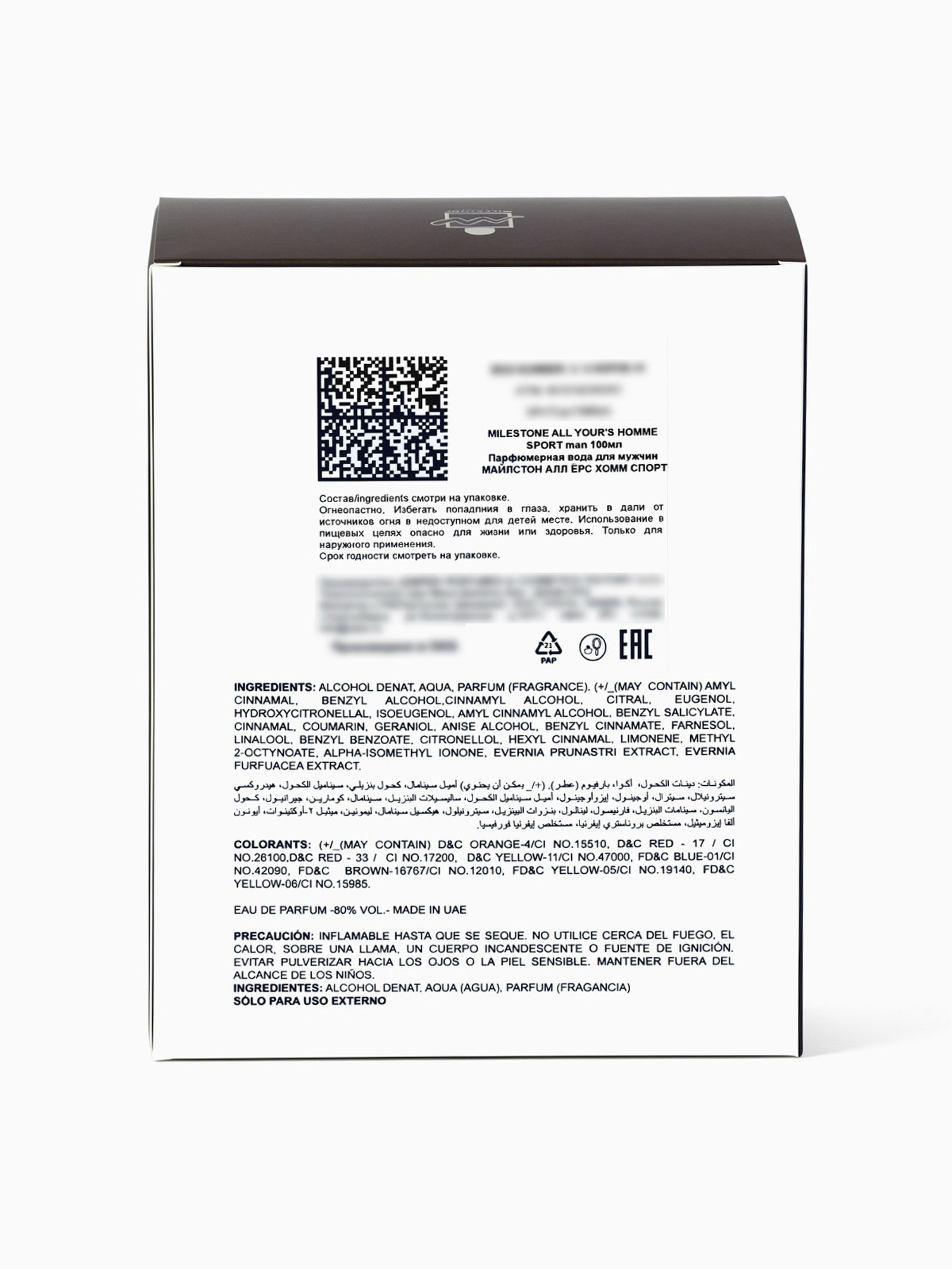 Парфюмерная вода мужская ALL YOUR'S HOMME SPORT, 100 мл, 100 мл., Milestone, Объединённые Арабские Эмираты