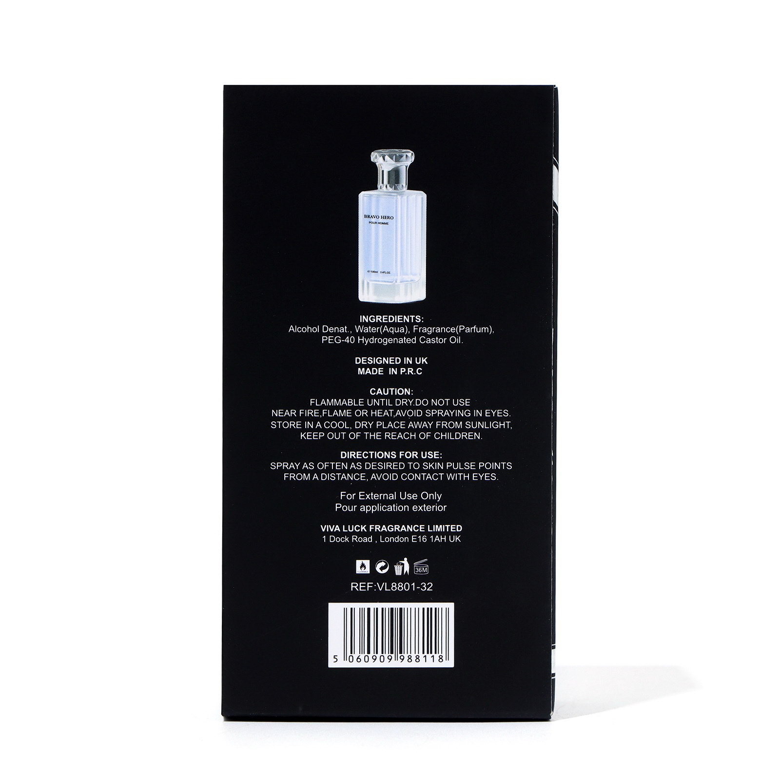 Туалетная вода мужская Bravo Hero, 100 мл, 5.5x5.5x13.5 см., Китай
