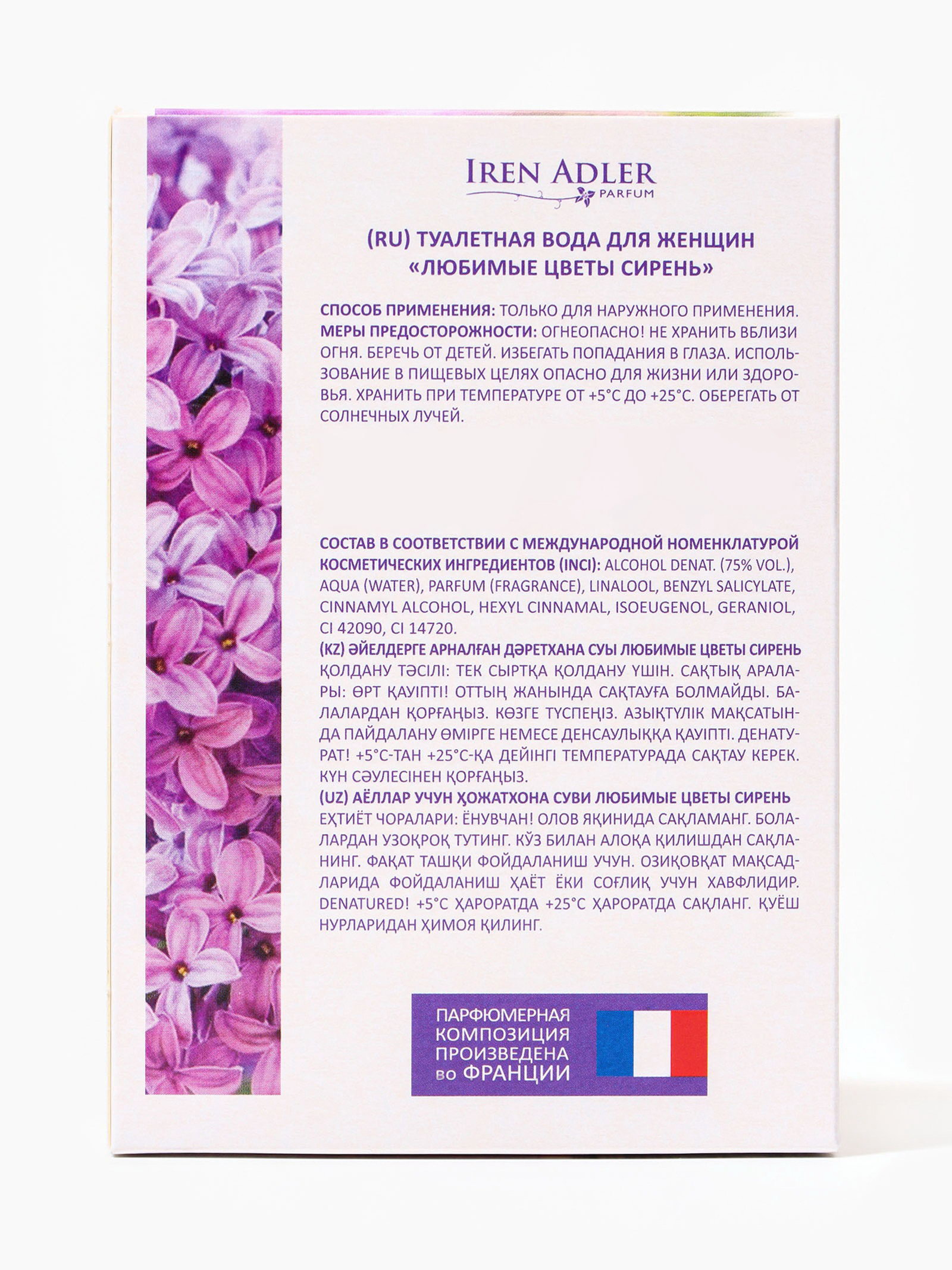 Размер упаковки: 4 x 13 x 9 см. Температурное ограничение: Нет Честный знак: Честный знак Вид: Туалетная вода Вид дозатора: Распылитель Группа ароматов: Цветочные Верхние ноты: Сирень Для кого: Для женщины Средние ноты: Сирень Базовые ноты: Сирень tnved: 3303009000 Туалетная вода "Любимые Цветы" с нотами сирени – это утонченный аромат, который приглашает вас в волшебный сад сиреневых цветов. Этот аромат предлагает яркое и нежное сочетание свежести и сладости, создавая атмосферу весеннего вдохновения. Начальные ноты туалетной воды раскрываются свежими и сочными аккордами сирени, придающими аромату легкость и яркость. В сердце композиции расцветают более насыщенные оттенки сирени, создавая чувственное и элегантное впечатление. Базовые ноты придают аромату стойкость и завершают этот удивительный букет. "Любимые Цветы" с сиренью – это идеальный выбор для тех, кто ценит изысканные и женственные ароматы, добавляя свежести и нежности вашему образу. | ||