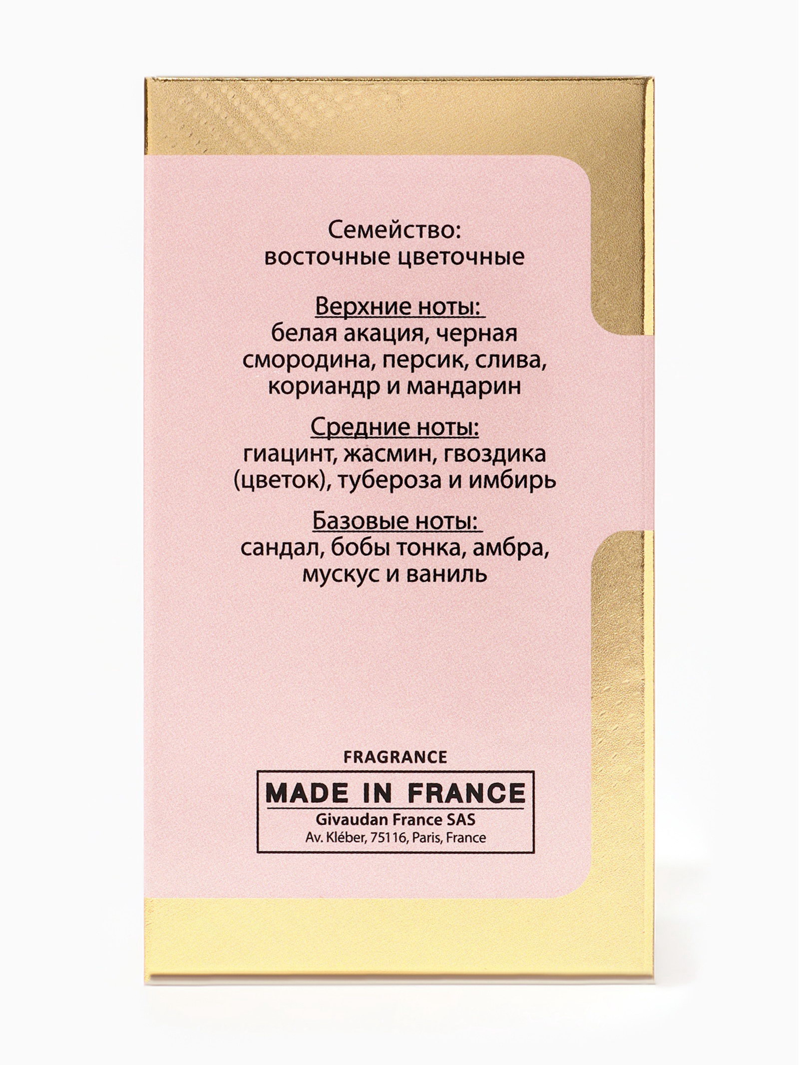 Группа ароматов: Восточные, Цветочные Средние ноты: Гвоздика, Гиацинт, Жасмин, Имбирь, Тубероза Базовые ноты: Амбра, Бобы тонка, Ваниль, Мускус, Сандал/Сантал Верхние ноты: Акация, Кориандр, Мандарин, Персик, Слива, Смородина Размер упаковки: 6.5 x 6.5 x 11 см. tnved: 3303009000 Температурное ограничение: Нет Честный знак: Честный знак Вид дозатора: Распылитель Вид: Туалетная вода Для кого: Для женщины Sensorium Warda это аромат для женщин, которые ценят романтику, элегантность и утонченную чувственность. Он создан для тех, кто умеет оставлять впечатление своей мягкой харизмой и женственной грацией. Этот парфюм словно сад утренних роз, наполняющий день свежестью, нежностью и гармонией. С первых мгновений Warda раскрывается цветочными акцентами, создавая ощущение лёгкости, свежести и изысканности. В сердце композиции проявляется мягкая сладость и утончённая женственность, которая подчеркивает индивидуальность и обаяние. Базовые ноты обеспечивают стойкий, лёгкий шлейф, создавая гармоничное сочетание романтики и элегантности. Sensorium Warda идеально подходит для дневного использования, прогулок, встреч и особых моментов, когда хочется подчеркнуть свою утонченность и внутреннюю гармонию. Аромат раскрывает мягкую уверенность женщины, создавая образ изысканной и женственной натуры. Парфюм оставляет за собой нежный, стойкий и притягательный шлейф, который сопровождает на протяжении всего дня, создавая ощущение свежести, легкости и романтичной элегантности. Флакон: 100 мл стильный и изящный, отражает концепцию аромата: женственность, цветочная свежесть и гармония. | ||