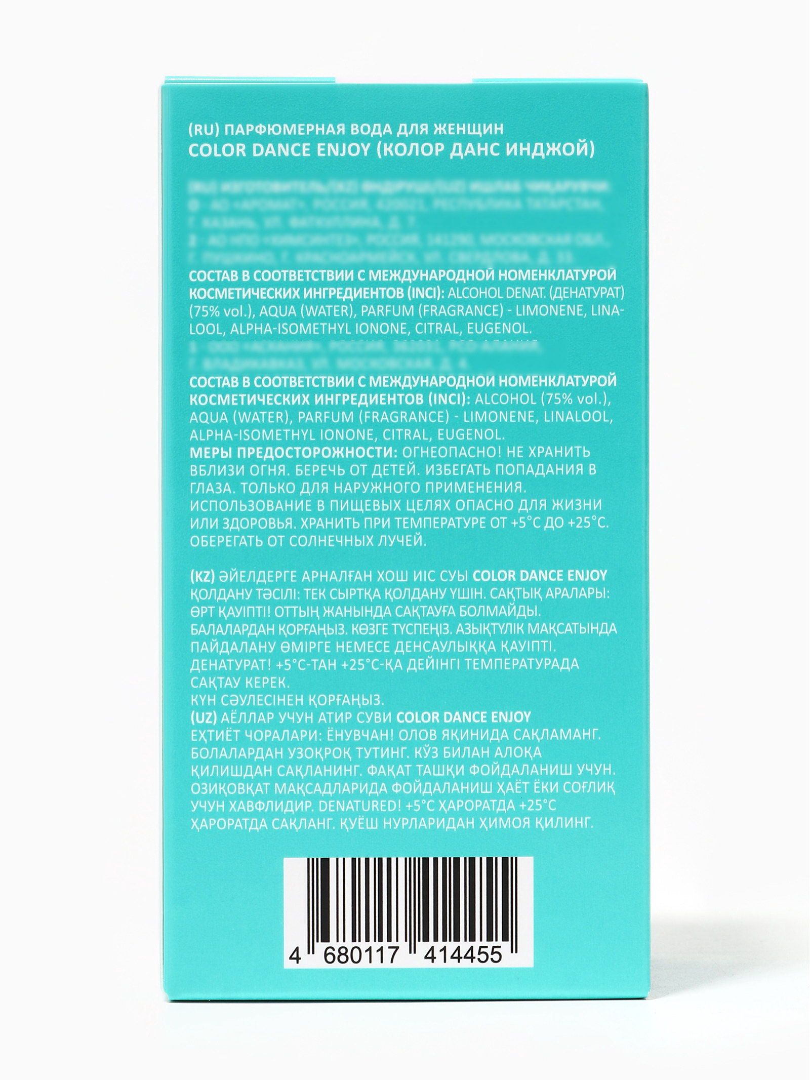 Группа ароматов: Восточные, Цветочные Базовые ноты: Iso E Super, Амброксан, Жасмин, Ирис Размер упаковки: 6 x 3.5 x 11.5 см. tnved: 3307900000 Температурное ограничение: Нет Честный знак: Честный знак Вид: Парфюмерная вода Для кого: Для женщины Вид дозатора: Распылитель Женская парфюмерная вода COLOR Dance?Enjoy это аромат для той, кто живёт моментом, выбирает лёгкость, настоящую радость и умение быть собой. Он создан, чтобы сопровождать женщину в её ярких мгновениях: будь то прогулка по вечернему городу, встреча с подругами или момент неожиданного вдохновения. Флакон объёмом 30?мл удобно помещается в сумку он легко станет вашим спутником и позволит освежать аромат там, где хочется лёгкости и уверенности. Dance?Enjoy это не просто запах: это заявление о настроении, которое хочется носить с собой. Аромат раскрывается дружелюбно и ненавязчиво, будто открывая двери к улыбкам и взглядам. Он подчёркивает женственность, помогает женщинам чувствовать себя свободно, естественно и гармонично. Несмотря на это, можно рекомендовать использовать аромат как аксессуар настроения: распылите за ушами, на запястья или в зону декольте он будет работать как лёгкий, женственный штрих, подчеркивающий вашу индивидуальность. | ||