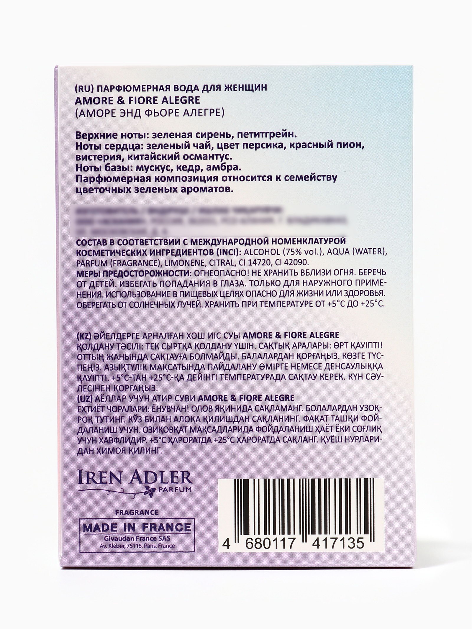 Парфюмерная вода женская Amore & Fiore Alegre, 25 мл, 25 мл., Amore Mio, Россия