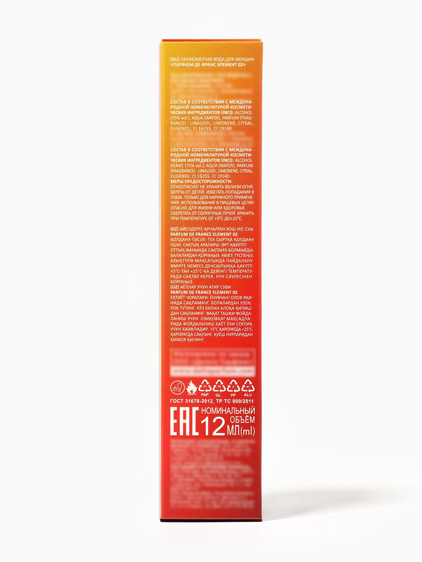 Парфюмерная вода женская Parfum De France Element 02, 12 мл, 12 мл., Parfums, Россия