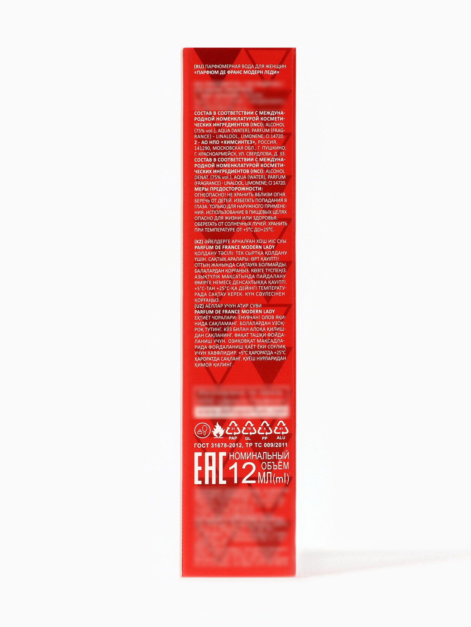 Базовые ноты: Дерево, Мускус, Орхидея Верхние ноты: Смородина, Яблоко Средние ноты: Жасмин, Фрезия Группа ароматов: Фруктовые, Цветочные Размер упаковки: 3 x 3 x 13 см. tnved: 3307900000 Честный знак: Честный знак Температурное ограничение: Нет Для кого: Для женщины Вид: Парфюмерная вода Вид дозатора: Распылитель Женская парфюмерная вода Parfum De France Modern Lady создана для уверенных, современных женщин, которые ценят стиль, элегантность и индивидуальность. Компактный флакон объёмом 12 мл идеально подходит для ежедневного использования, легко помещается в сумочку и позволяет освежить аромат в течение дня, где бы вы ни находились. Эта парфюмерная вода подчёркивает женственность и харизму, создавая вокруг своей обладательницы лёгкую атмосферу притягательности и уверенности. Parfum De France Modern Lady подходит для любых ситуаций от работы и встреч с друзьями до романтических вечеров и особых событий, помогая женщине оставаться яркой, стильной и запоминающейся. С каждым использованием этот аромат становится частью образа, подчеркивая индивидуальность и внутреннюю силу. Parfum De France Modern Lady это сочетание практичности, элегантности и выразительности, которое делает повседневные моменты более особенными. | ||