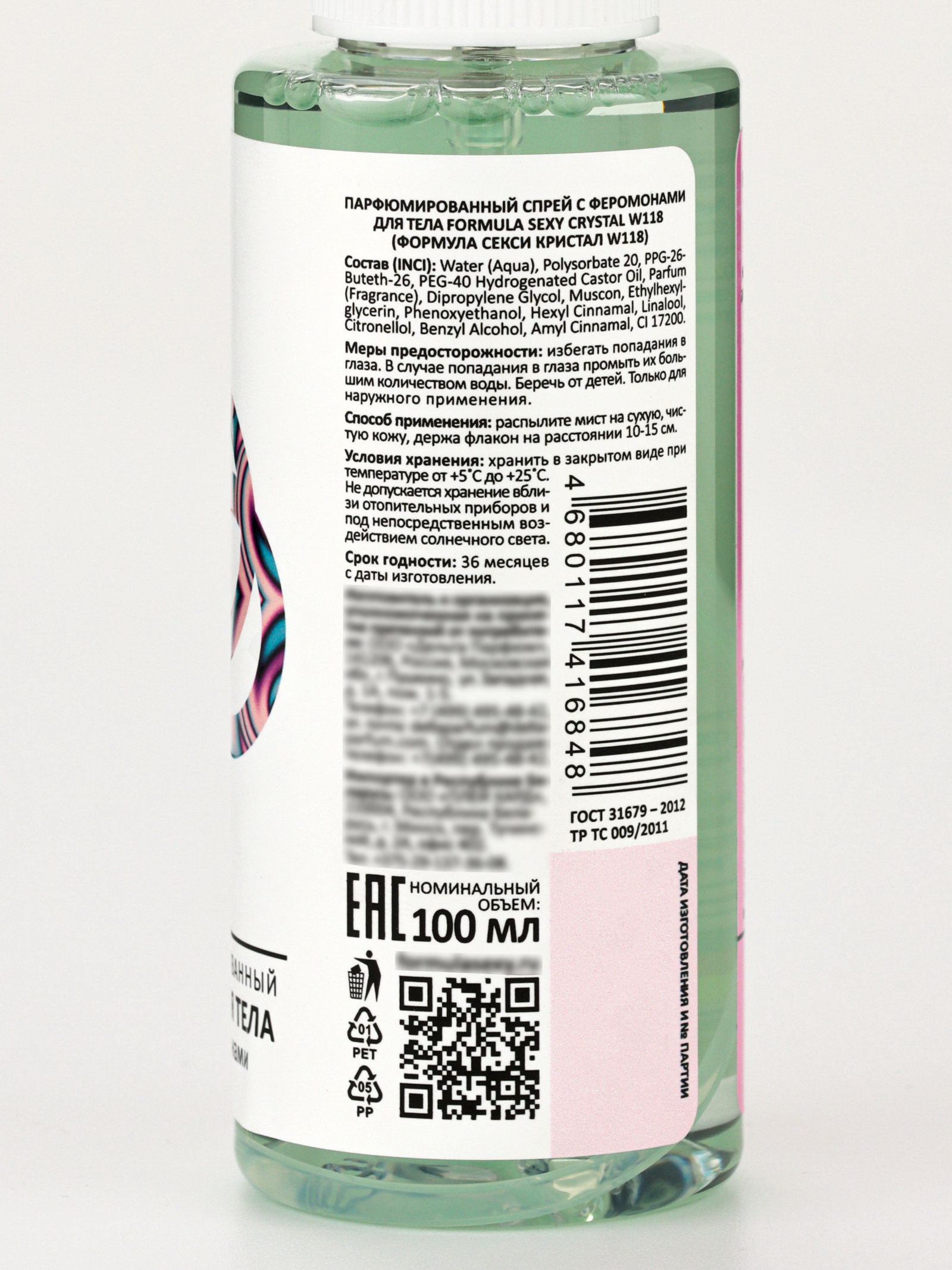 Мист парфюмированный спрей с феромонами для тела Crystal W118, 100 мл, 100 мл., Formula Sexy, Россия