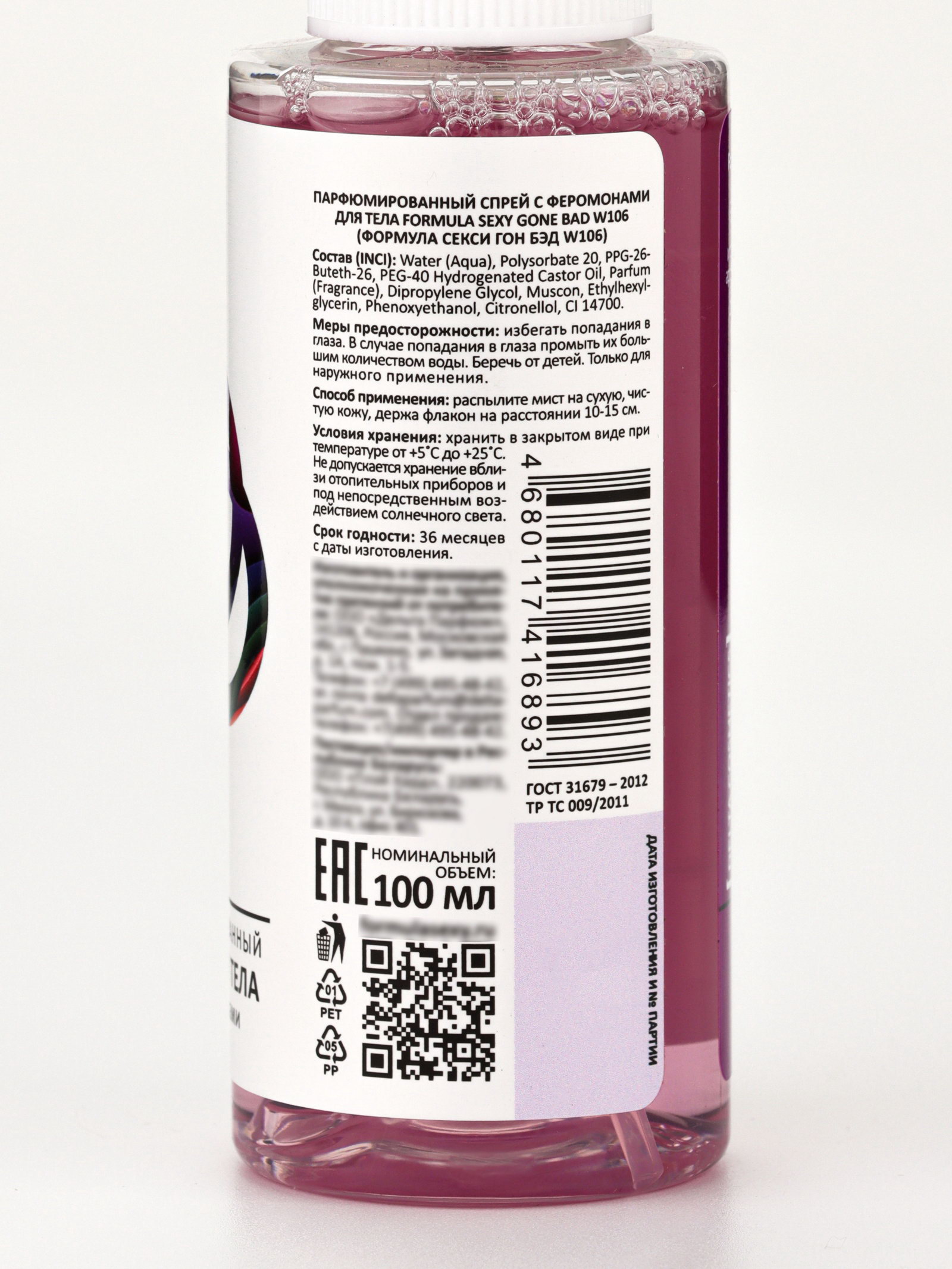 Мист парфюмированный спрей с феромонами для тела Gone Bad W106, 100 мл, 100 мл., Formula Sexy, Россия