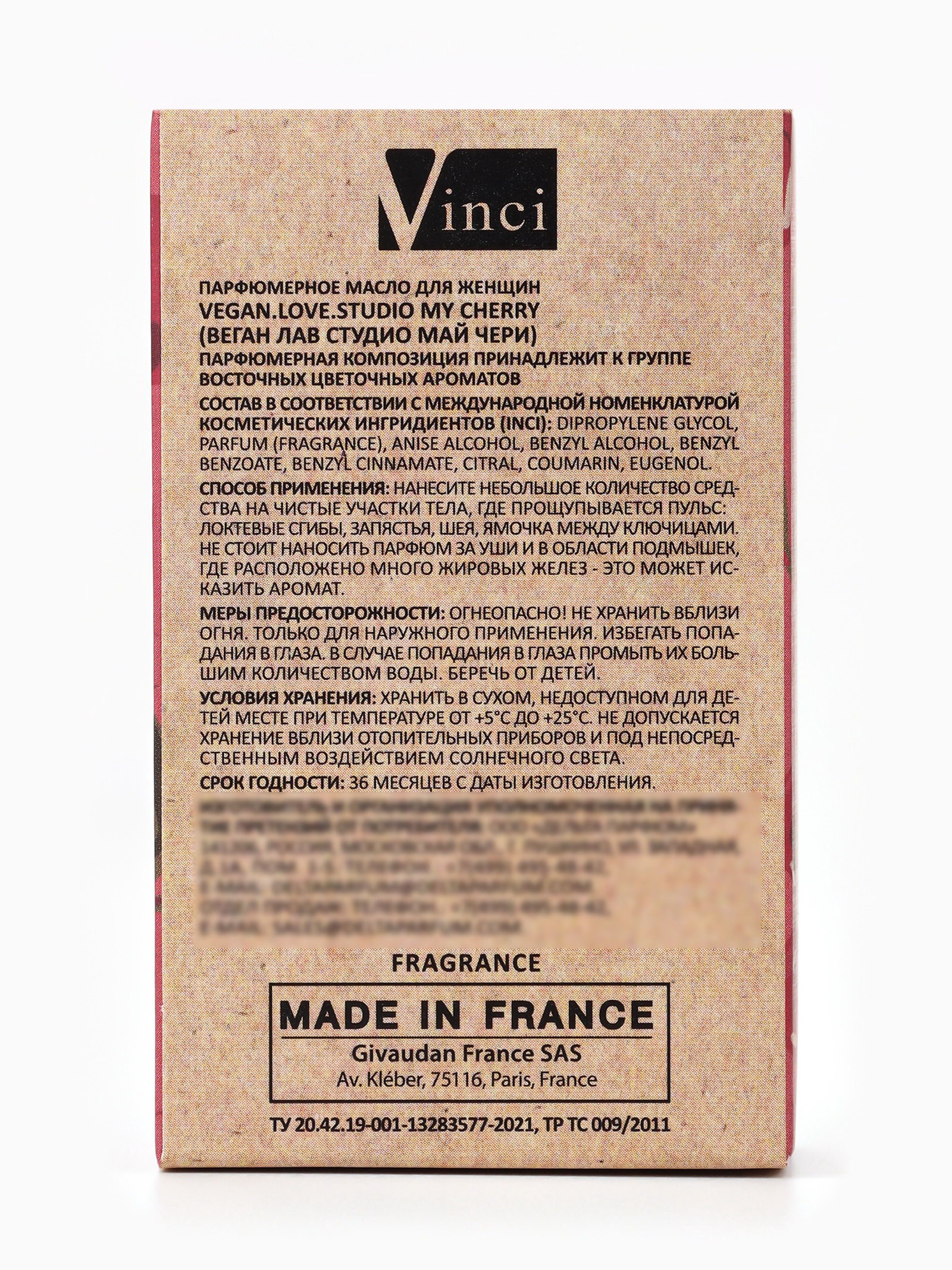 Группа ароматов: Восточные, Цветочные Верхние ноты: Вишня, Ликёр, Миндаль Базовые ноты: Бобы тонка, Ваниль, Ветивер, Гвоздика, Кедр, Корица, Пачули, Сандал/Сантал Средние ноты: Вишня, Жасмин, Роза, Слива Размер упаковки: 3.5 x 9 x 5.5 см. tnved: 3307490000 Температурное ограничение: Нет Вид дозатора: Шариковый ролик Для кого: Для женщины Вид: Парфюмерное масло Парфюмерное масло VEGAN.Love.Studio My Cherry это насыщенный, сладко-грязный и соблазнительный аромат, созданный для уверенных и чувственных женщин. По мотивам легендарного Lost Cherry (Tom Ford), масло сочетает в себе сочные фруктовые ноты с глубокими пряными и бальзамическими акцентами, создавая роскошный и стойкий шлейф. Аромат раскрывается сочной, спелой вишней и нотами черной смородины, которые дарят ощущение сладости и игривости. В сердце композиции звучат миндаль и цветочные оттенки, добавляя глубину и изысканность. Базовые ноты ваниль, сандал, амбра и мускус создают тёплый, бархатистый шлейф, который остаётся на коже надолго, усиливая соблазнительный эффект. Концентрированная формула парфюмерного масла обеспечивает долговременное раскрытие аромата. Его удобно наносить на точки пульса запястья, шею, за ушами чтобы аромат раскрылся постепенно, создавая персональный шлейф. Преимущества VEGAN.Love.Studio My Cherry: