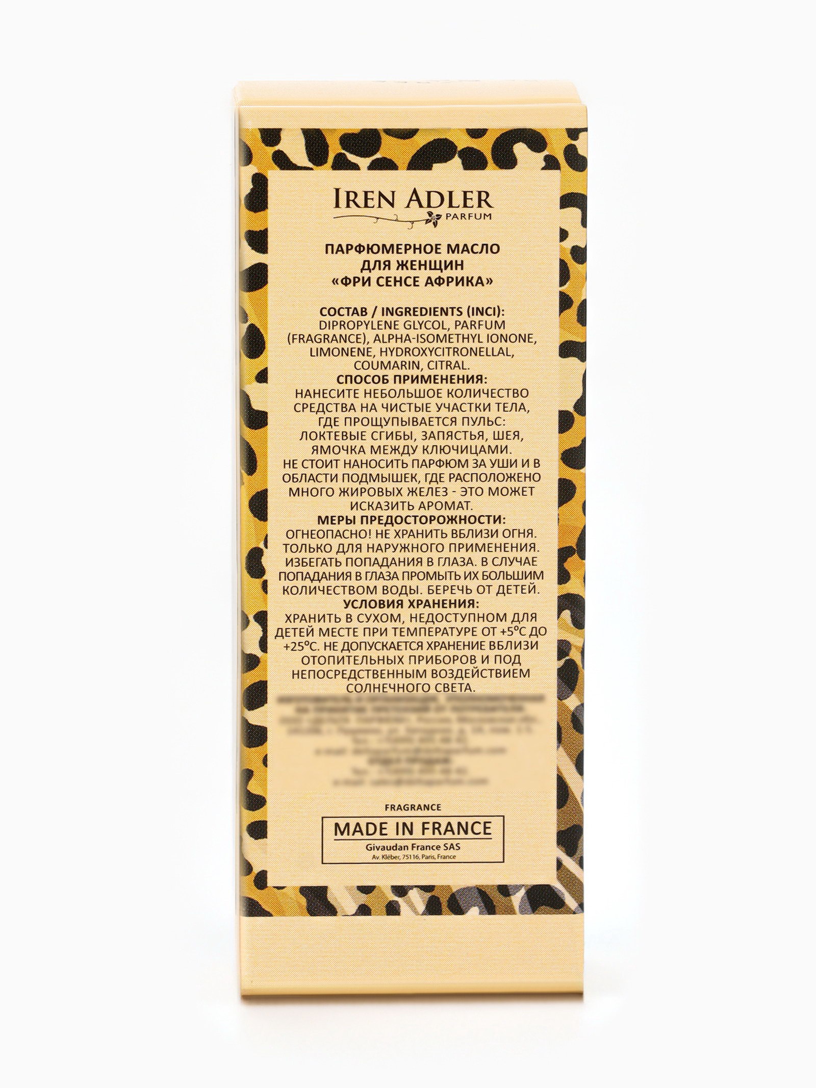 Группа ароматов: Восточные, Древесные Базовые ноты: Амбра, Ветивер, Кедр, Мускус Средние ноты: Жасмин, Фиалка, Цикламен Верхние ноты: Апельсиновый цвет (Флёрдоранж), Бархатцы, Лимон Размер упаковки: 3 x 9 x 4 см. tnved: 3307490000 Температурное ограничение: Нет Для кого: Для женщины Вид: Парфюмерное масло Вид дозатора: Шариковый ролик Парфюмерное масло Free Sense Africa это утончённый, тёплый и экзотический аромат для женщин, ценящих индивидуальность и стиль. По мотивам Bal d’Afrique (Byredo), масло сочетает яркие фруктовые и цветочные акценты с мягкими древесными и амбровыми нотами, создавая гармоничный, стойкий и элегантный шлейф. Аромат раскрывается свежими верхними нотами бергамота, лимона и нероли, создавая ощущение лёгкости и солнечного настроения. В сердце композиции звучат цветочные акценты жасмина и фрезии, придавая аромату утончённость и женственность. Базовые ноты ветивера, мускуса и тёплой амбры формируют бархатистый, стойкий и соблазнительный шлейф, который остаётся на коже на протяжении всего дня. Концентрированная текстура масла обеспечивает длительное раскрытие аромата. Его удобно наносить на точки пульса запястья, шею, за ушами чтобы аромат раскрылся постепенно, создавая персональный шлейф. Преимущества Free Sense Africa: