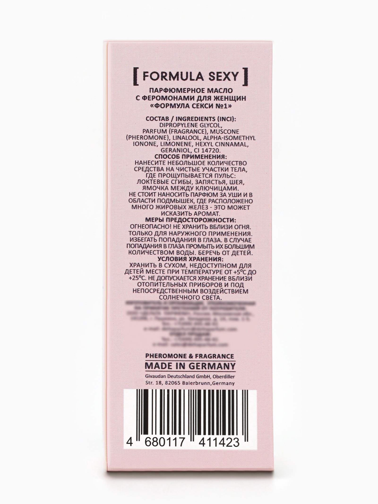 Парфюмерное масло женское с феромонами №1, 8 мл, 8 мл., Formula Sexy, Россия