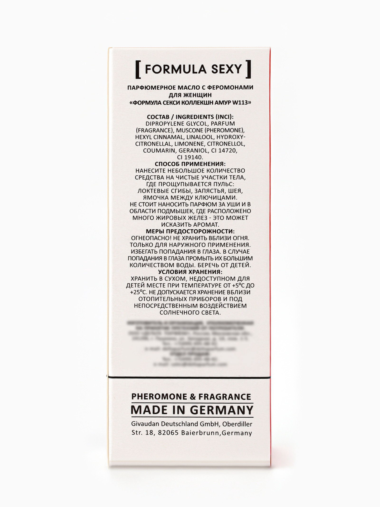 Парфюмерное масло женское с феромонами Collection Amour W113, 8 мл, 8 мл., Formula Sexy, Россия