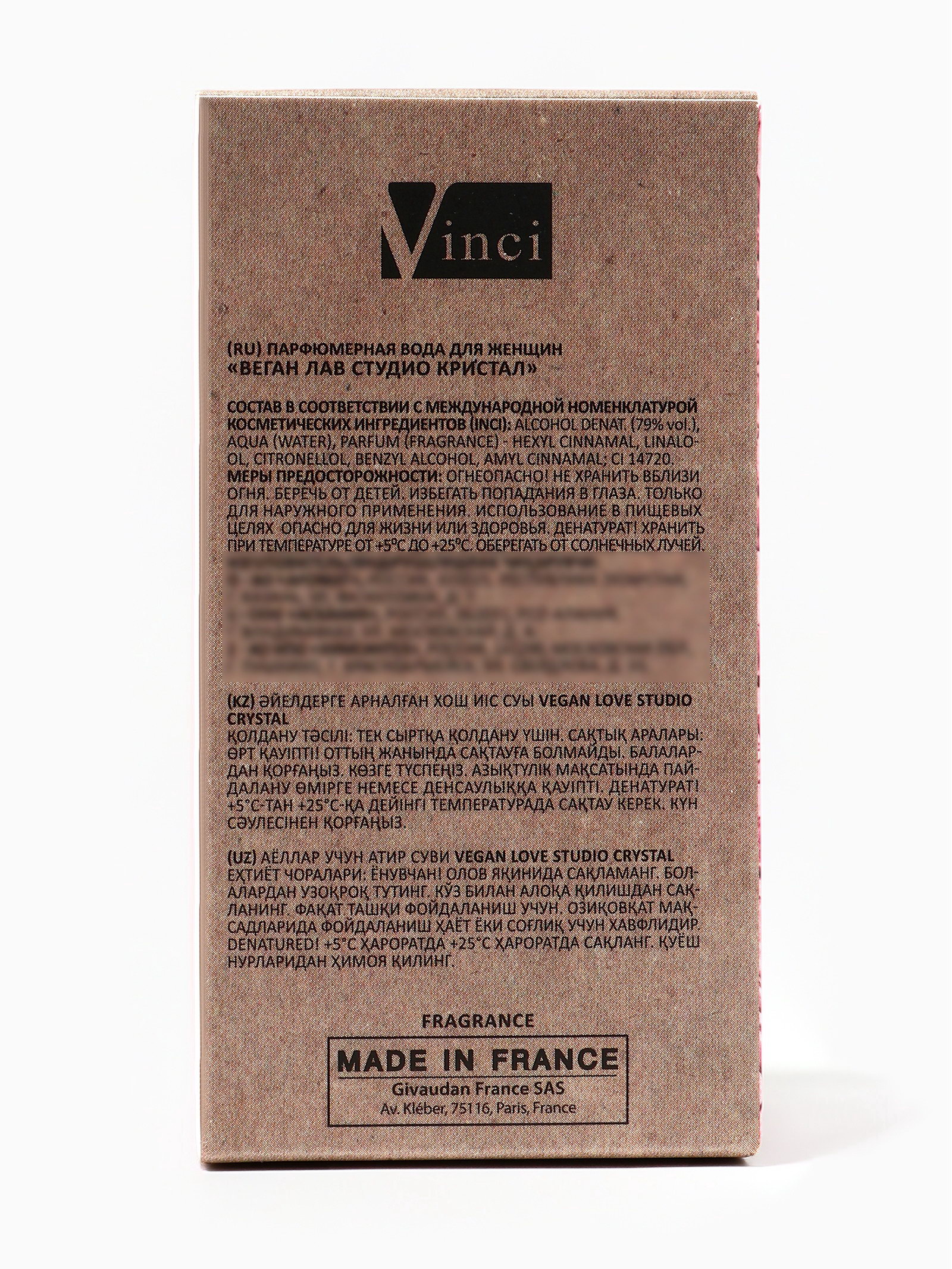 Группа ароматов: Фруктовые, Цветочные Верхние ноты: Гранат, Юзу Средние ноты: Лотос, Магнолия, Пион Базовые ноты: Амбра, Махагони, Мускус Размер упаковки: 5.5 x 5.5 x 10 см. tnved: 3307900000 Честный знак: Честный знак Температурное ограничение: Нет Для кого: Для женщины Вид: Парфюмерная вода Вид дозатора: Распылитель Парфюмерная вода женская Vegan Love Studio Crystal, 50 мл это свежий, лёгкий и сияющий аромат для женщин, которые ценят утончённость, женственность и мягкую элегантность. Вдохновлённая Bright Crystal (Versace), она сочетает прозрачные фруктовые и цветочные ноты с нежной мускусно-древесной базой, создавая стойкий, переливчатый и притягательный шлейф. Композиция открывается свежими и яркими нотами граната, юзу и ягод, даря ощущение бодрости, лёгкости и сияния. В сердце аромата раскрываются цветочные акценты магнолии, пиона и лотоса, придавая аромату женственность, утончённость и мягкую грацию. Базовые ноты белого мускуса и лёгкой древесины создают бархатистый, стойкий и элегантный шлейф, который остаётся на коже на протяжении всего дня. Парфюмерная вода Vegan Love Studio Crystal подчёркивает природное обаяние и магнетизм, создавая вокруг вас лёгкое и чарующее поле притяжения. Формула аромата полностью веганская, не содержит ингредиентов животного происхождения и подходит для современной осознанной женщины. Для максимального раскрытия наносите аромат на точки пульса запястья, шею, область за ушами так он проявит себя полностью, создавая персональный, сияющий и мягкий шлейф. Преимущества Vegan Love Studio Crystal, 50 мл:
