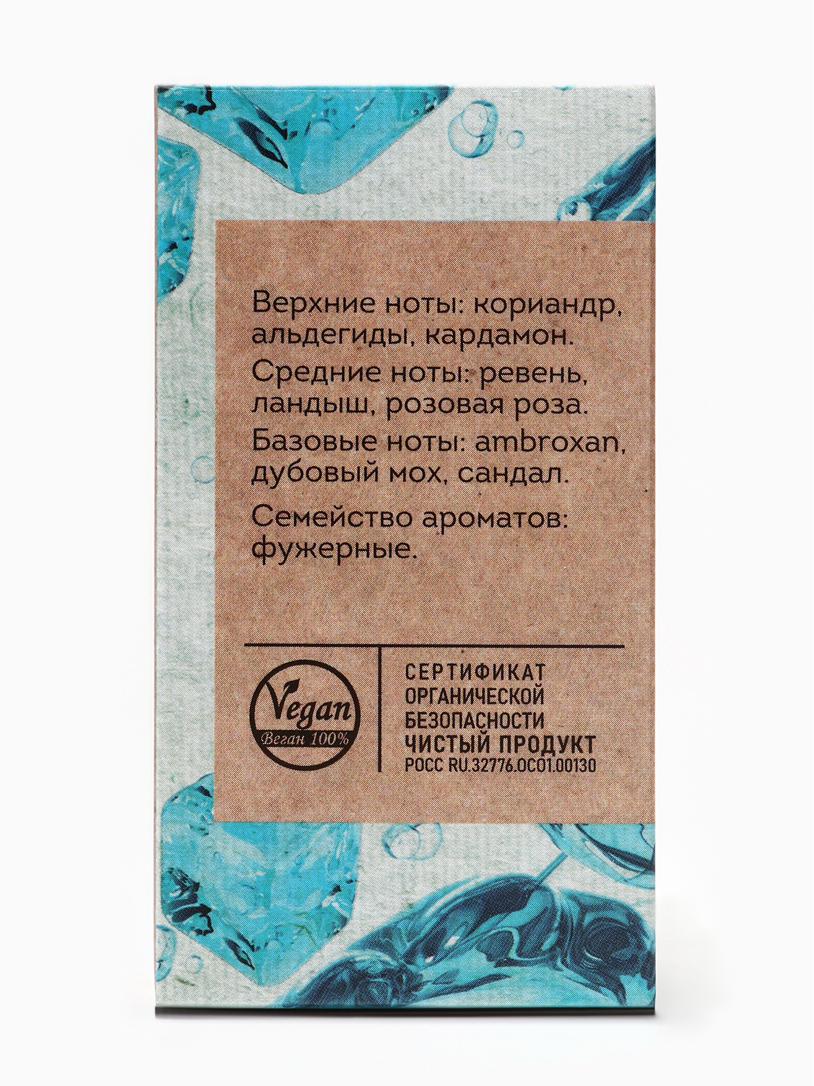 Верхние ноты: Альдегиды, Кардамон, Кориандр Средние ноты: Ландыш, Ревень, Роза Базовые ноты: Амброксан, Дубовый мох, Сандал/Сантал Размер упаковки: 5 x 5 x 10 см. tnved: 3307900000 Честный знак: Честный знак Температурное ограничение: Нет Группа ароматов: Фужерные Вид: Парфюмерная вода Для кого: Для женщины Вид дозатора: Распылитель Парфюмерная вода женская Vegan Love Studio Vodka On Ice, 50 мл Погрузитесь в свежесть и дерзкую элегантность с Vegan Love Studio Vodka On Ice средством для современной женщины, которая любит необычные, стойкие и многогранные сочетания. Этот флакон раскрывает композицию, которая сочетает свежие пряные акценты, нежные цветочные нотки и глубокое, тёплое завершение. Ноты композиции: