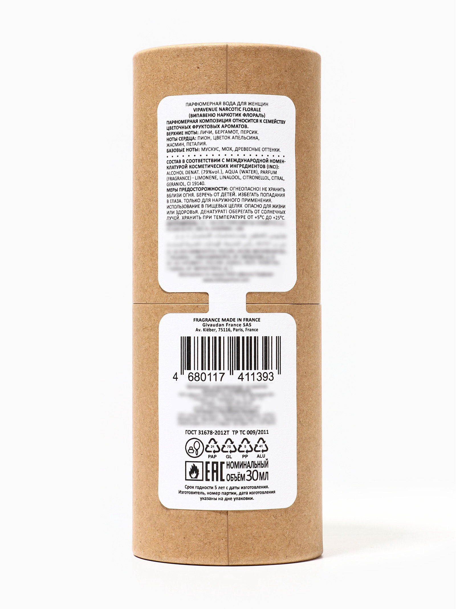 Группа ароматов: Фруктовые, Цветочные Средние ноты: Апельсин, Жасмин, Петалия, Пион Базовые ноты: Древесные акценты, Дубовый мох, Мускус Верхние ноты: Бергамот, Личи, Персик Размер упаковки: 5 x 5 x 14 см. tnved: 3307900000 Температурное ограничение: Нет Честный знак: Честный знак Вид: Парфюмерная вода Для кого: Для женщины Вид дозатора: Распылитель Парфюмерная вода женская VIPAVENUE Narcotic Florale, 30 мл это утончённый, воздушный и чарующий аромат для женщин, которые ценят элегантность, женственность и лёгкую загадочность. Вдохновлённая Fleur Narcotique (Ex Nihilo), она сочетает фруктово-цветочные ноты с мягкой мускусной и древесной базой, создавая стойкий, бархатистый и притягательный шлейф. Композиция открывается свежими и сочными нотами груши, личи и зелёного цитруса, даря ощущение лёгкости, свежести и утончённой элегантности. В сердце аромата раскрываются цветочные оттенки пиона, жасмина и апельсинового цвета, придавая аромату мягкую женственность, грацию и воздушность. Базовые ноты белого мускуса и лёгкой древесины формируют бархатистый, стойкий и чарующий шлейф, который остаётся на коже на протяжении всего дня. Парфюмерная вода VIPAVENUE Narcotic Florale подчёркивает природное обаяние и создаёт вокруг вас невидимое, но ощущаемое поле притяжения. Для максимального раскрытия наносите аромат на точки пульса запястья, шею, область за ушами так аромат проявит себя полностью, создавая персональный, лёгкий и чарующий шлейф. Преимущества VIPAVENUE Narcotic Florale, 30 мл:
