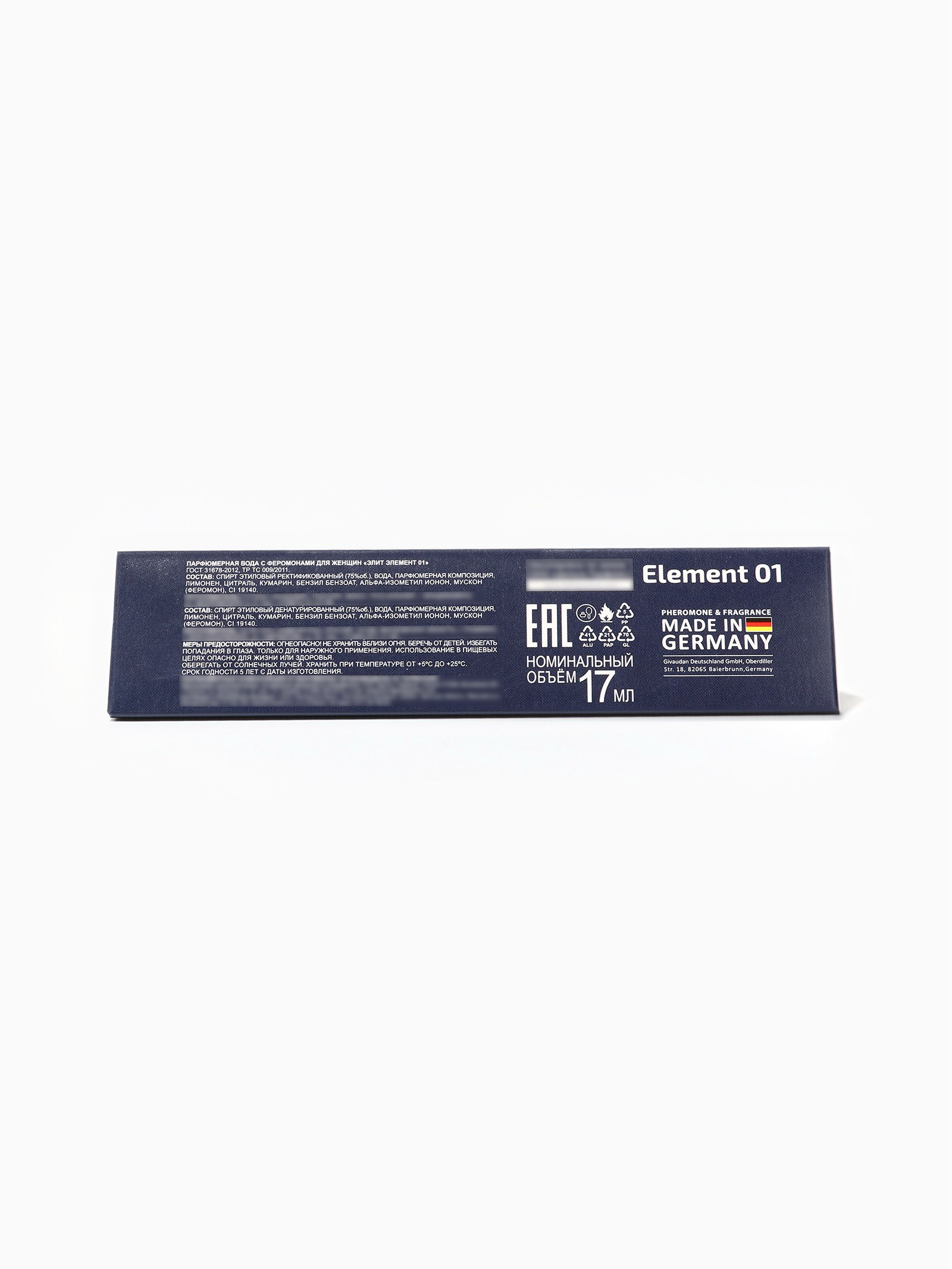 Парфюмерная вода женская с феромонами Element 01, 17 мл, 17 мл., Elite, Россия